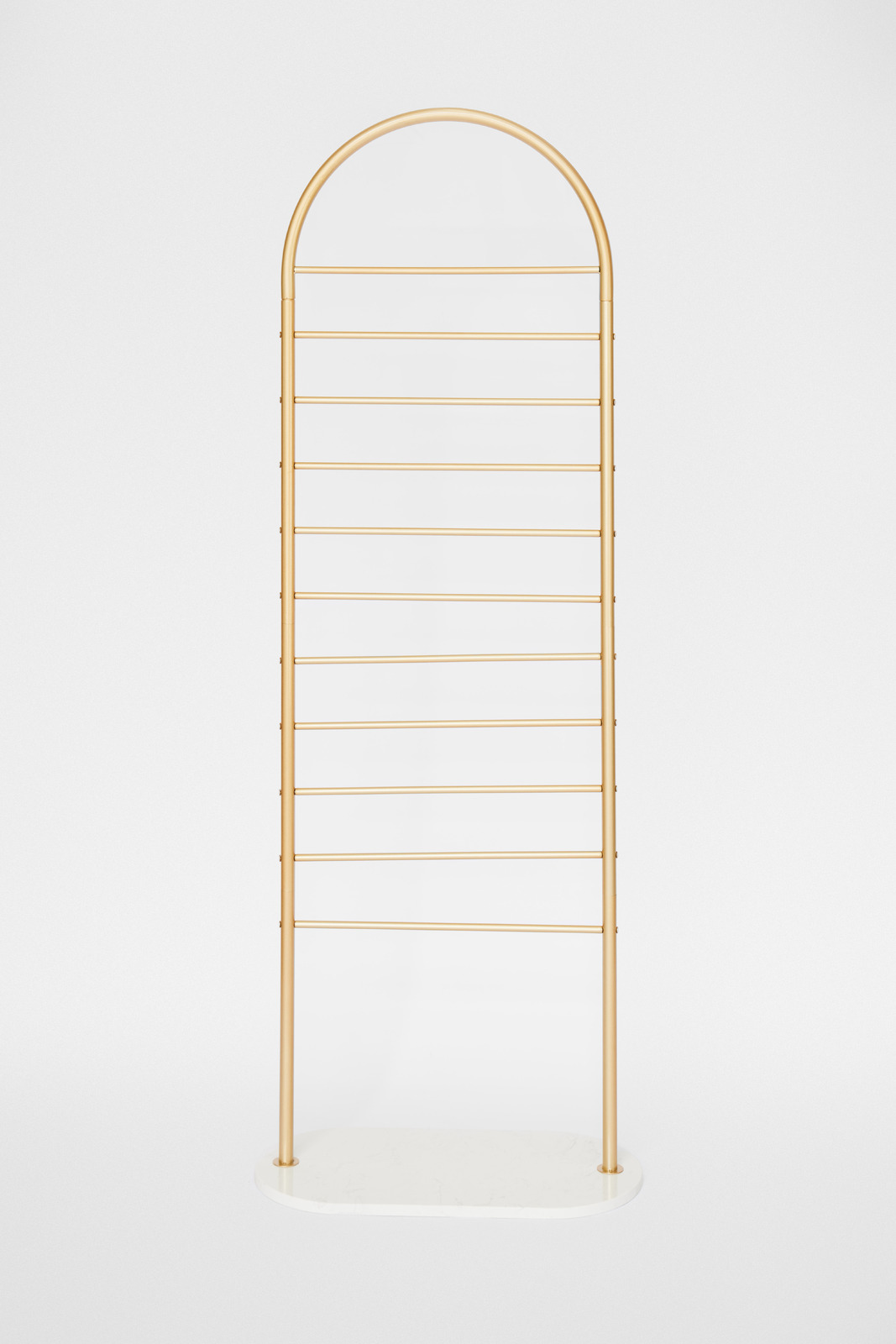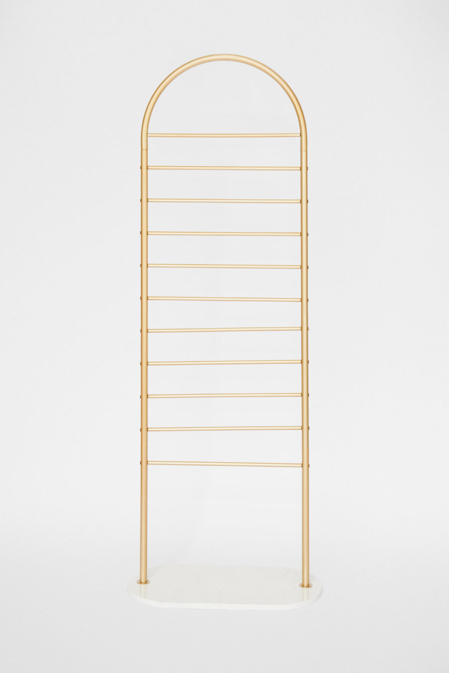 The GOLD hijab stand has been specially designed by our team at Hijab House to help organize your hijabs. This stand is visually appealing with a beautiful gold finish and includes 11 rows for storage, helping you arrange and store up to 48 folded hijabs. Our team designed this stand after noticing the struggle our customers go through in order to organize their hijab collection. This stand will allow you to arrange your hijabs according to color, style or occasion, making all of your hijabs accesible, allowing you to find the perfect hijab for any outfit.