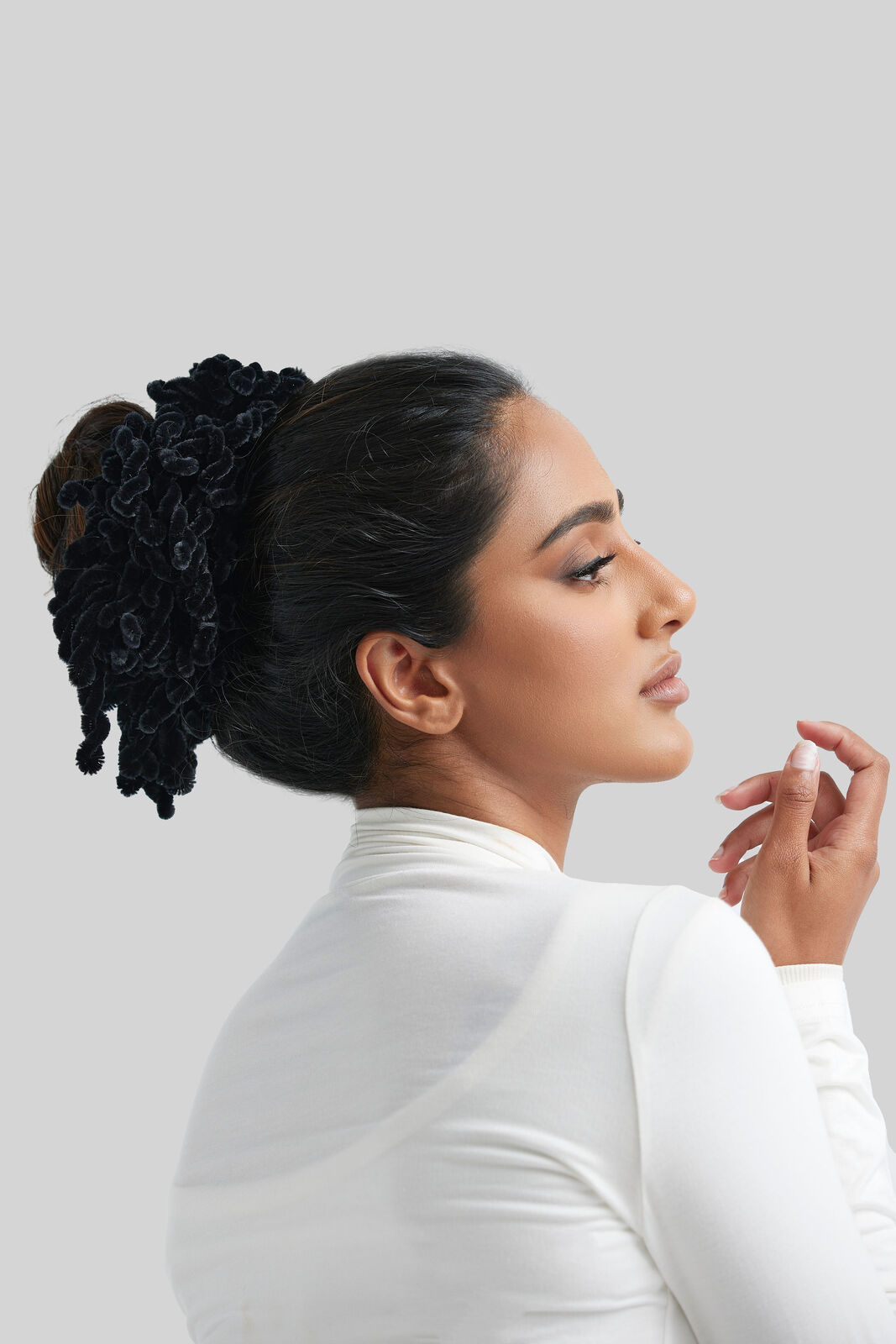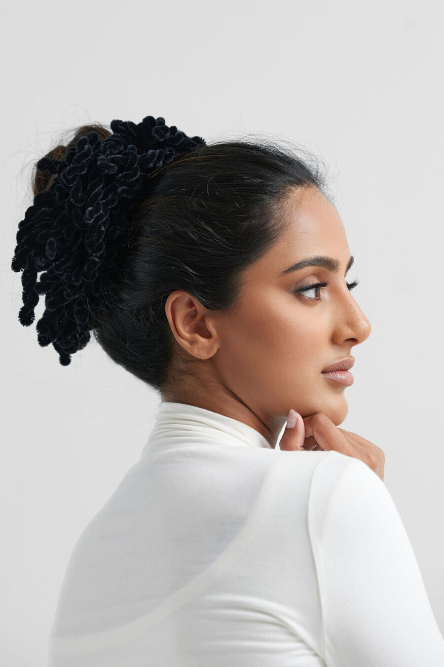 With a no-slip, no-snag design, our versatile scrunchie ensures a perfect bun, securing your scarf or serving as a base for a turban without causing headaches.