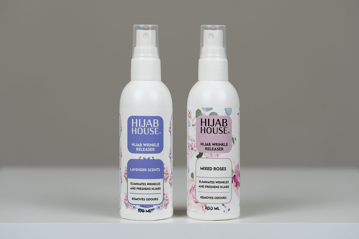Introducing a revolutionary solution for keeping your hijab looking crisp and wrinkle-free! Our new anti-wrinkle spray is specifically formulated for delicate hijab fabrics such as modals, chiffon and even jersey hijabs.  Not only does it remove wrinkles, but it also adds a light fragrance and refreshes the fabric. Made with a gentle, water-based formula, our spray is perfect for everyday use. Our anti-wrinkle spray is a quick and easy way to refresh your hijab and get out those wrinkles on-the-go! Available now in two different scents: Lavender and Mixed Roses.