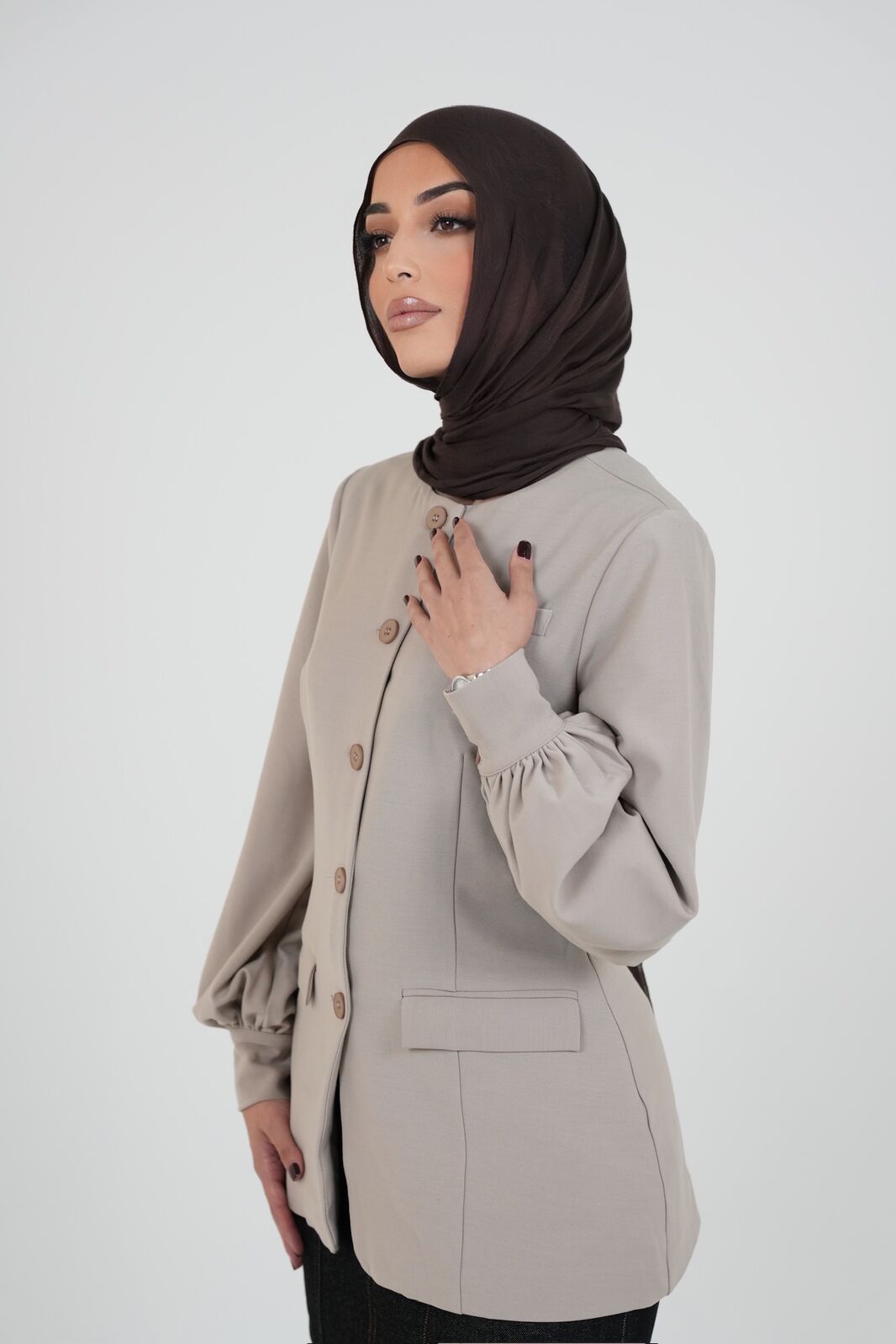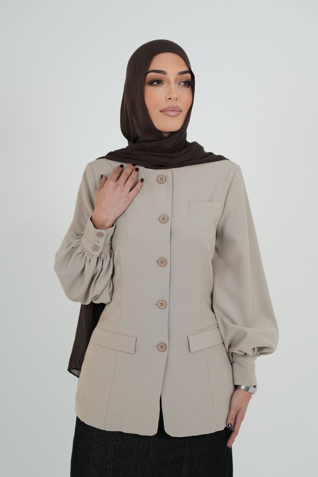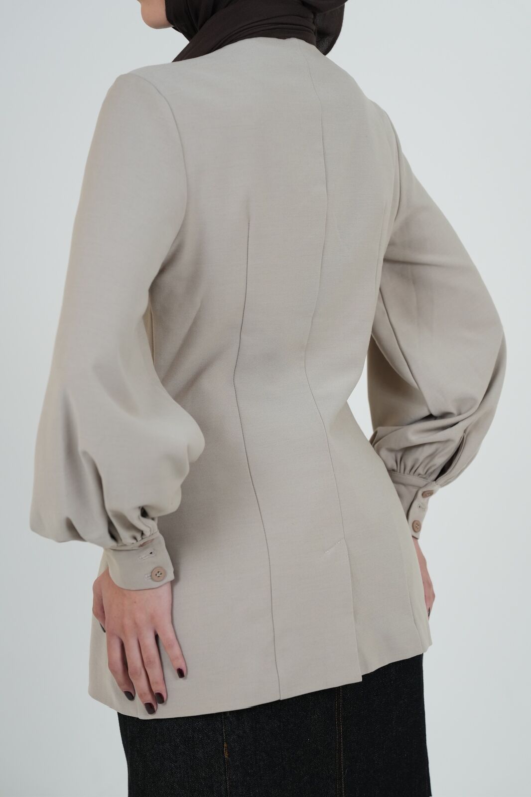 Structured meets statement. Our Balloon Sleeve Blazer in nude beige adds a bold twist to a timeless silhouette. With its voluminous balloon sleeves, sleek front button, and soft tailoring, it’s the perfect balance of polished and fashion-forward. Fully lined for a smooth fit and finished with a front pocket for just the right amount of detail. Wear it to elevate your everyday or layer it over a dress for a standout look.