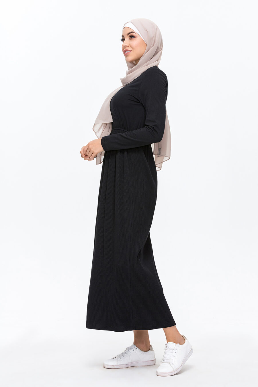 Designed for comfort and style, this classic dress features a ribbed, pleated skirt and a soft cotton top with an elastic waist for a slimming, non-sheer, and versatile look.Sizes from 6 to 16