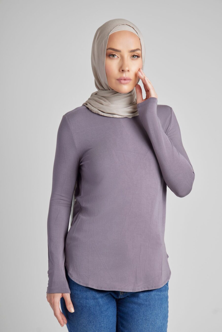 Achieve an effortless, everyday outfit with the high crew neckline and curved hem of this lightweight, non-sheer top. Perfect with skirts or wide leg pants. Add to your wardrobe now! Sizes from 6 to 16