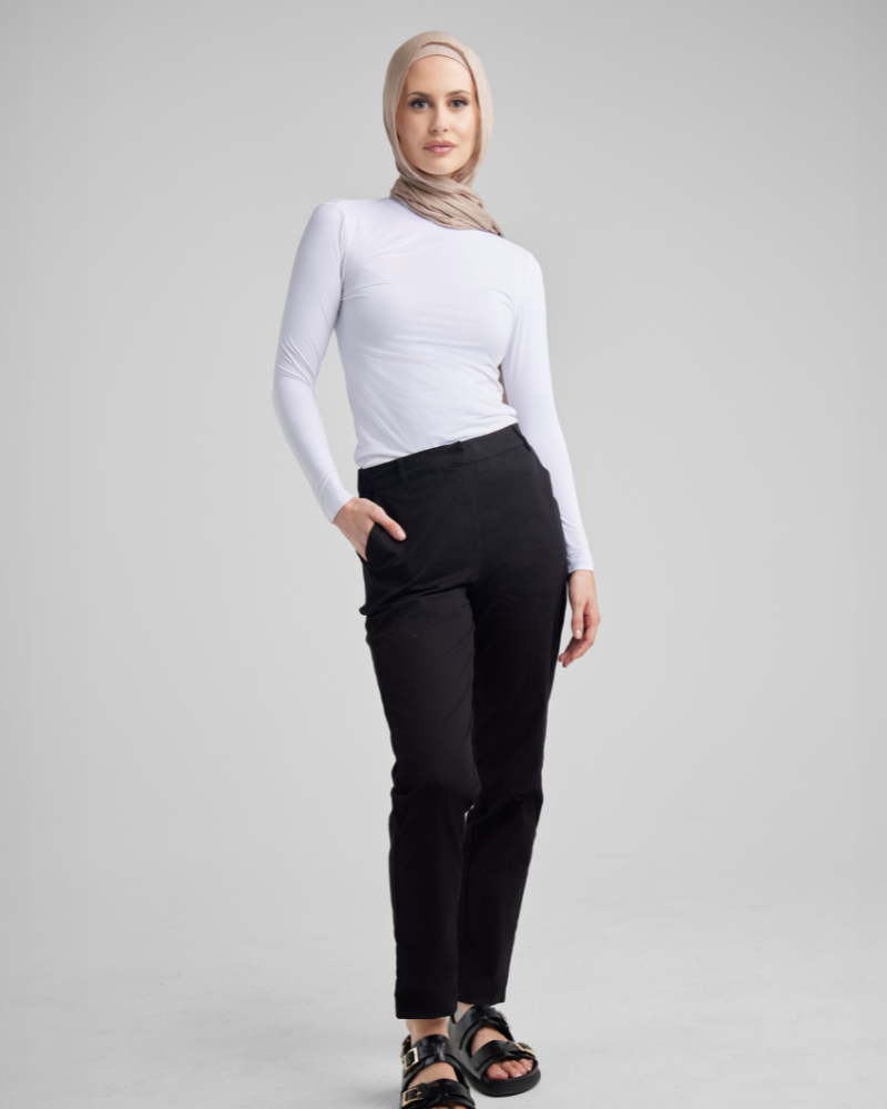 Whether paired with a blazer for the office or a flowing blouse for an evening out, these black pants are your go-to for a sleek, streamlined look.