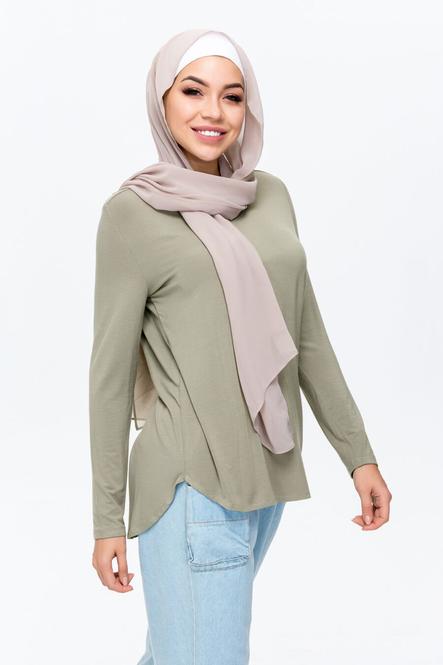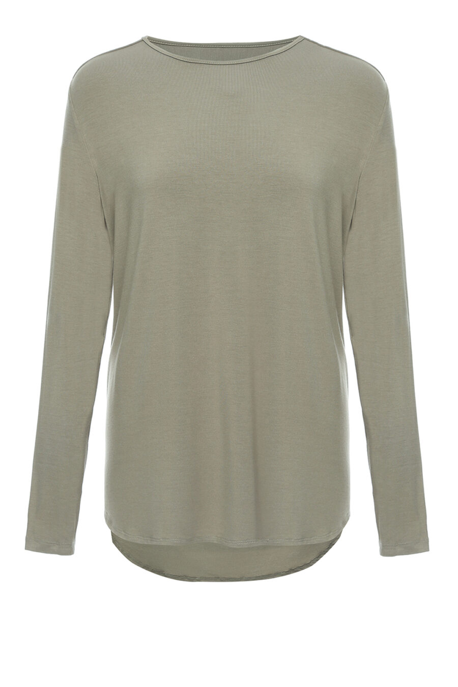 Achieve an effortless, stylish look with this lightweight top. The high crew neckline and curved hem make it perfect for pairing with skirts or wide-leg pants. Non-sheer for easy wear.Sizes from 6 to 16