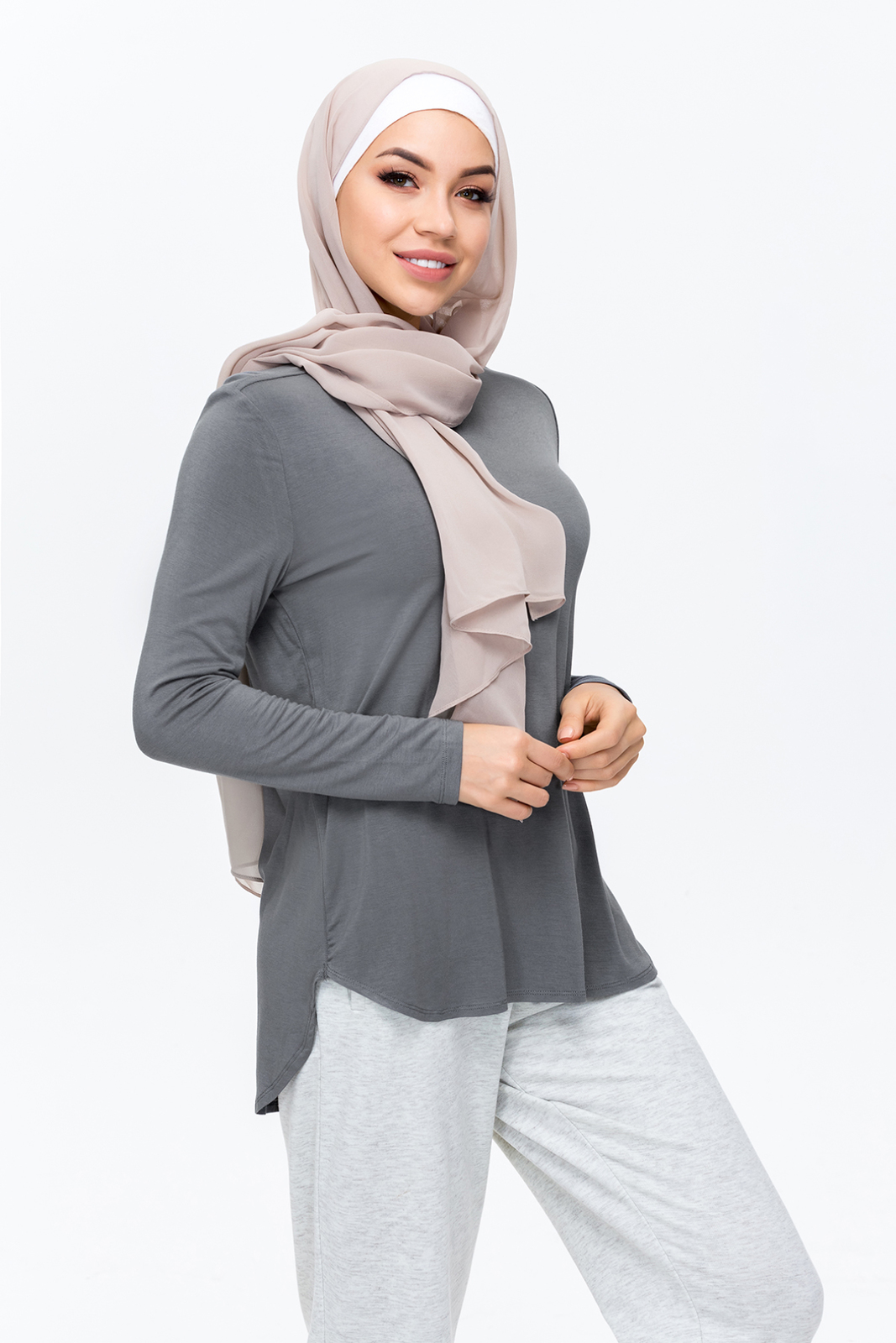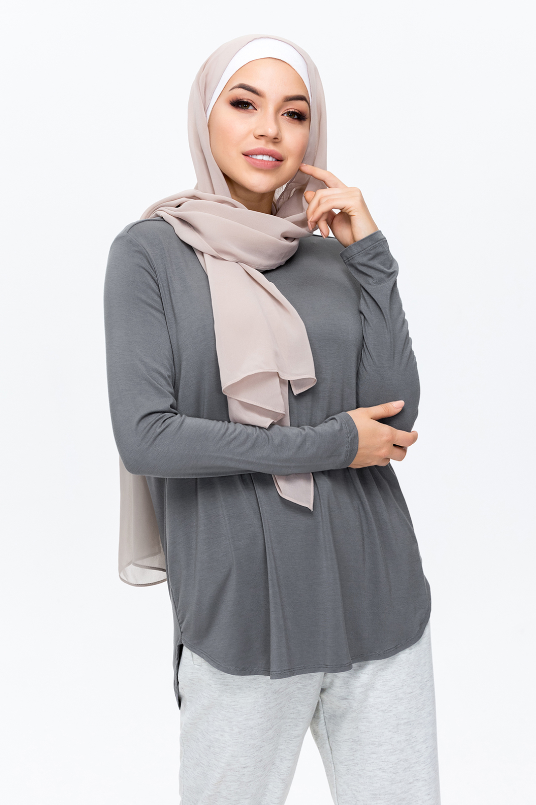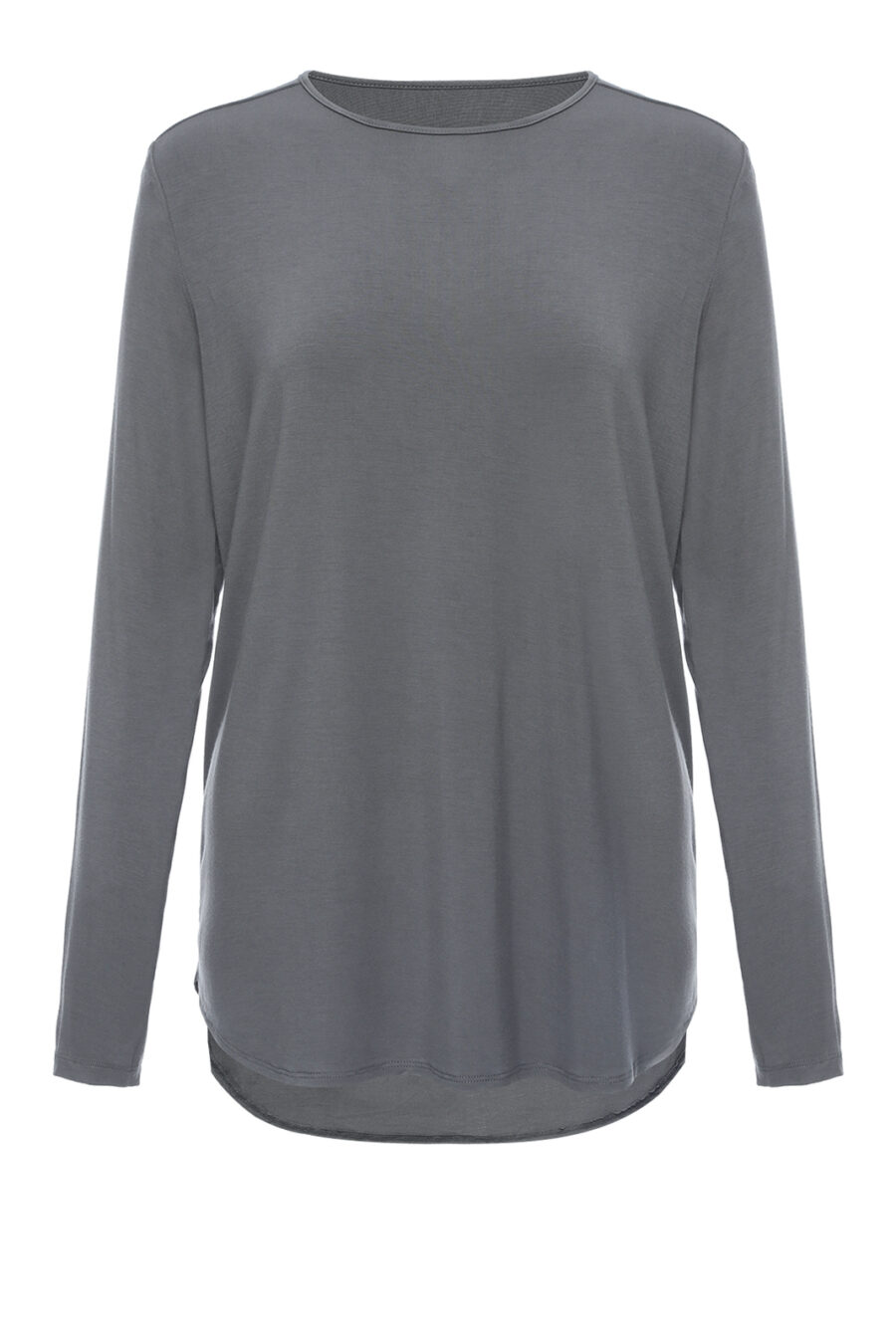 Achieve an effortless, everyday look with this top featuring a high crew neckline and a curved hem. It’s non-sheer, eliminating the need for layering. Get yours for easy style!Sizes from 6 to 16