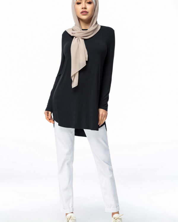 Achieve an effortless, everyday look with the high crew neckline and curved hem of this non-sheer top. Perfect with a skirt or wide-leg pants for a stylish wardrobe addition.Sizes from 6 to 16