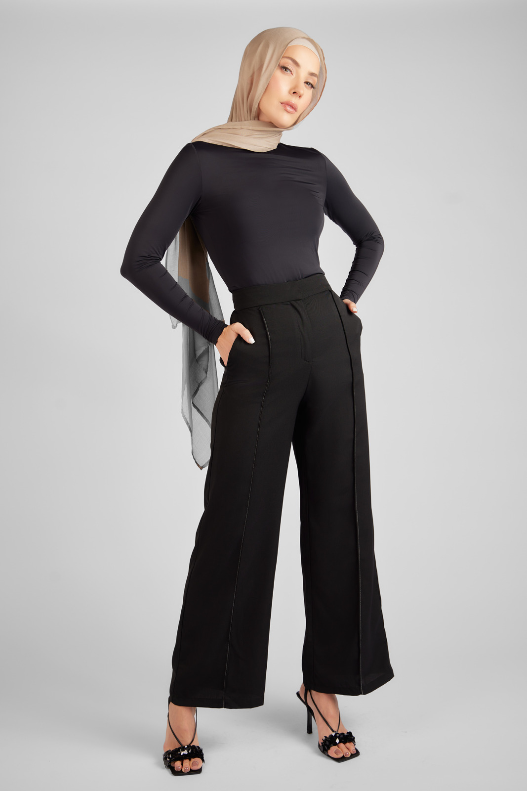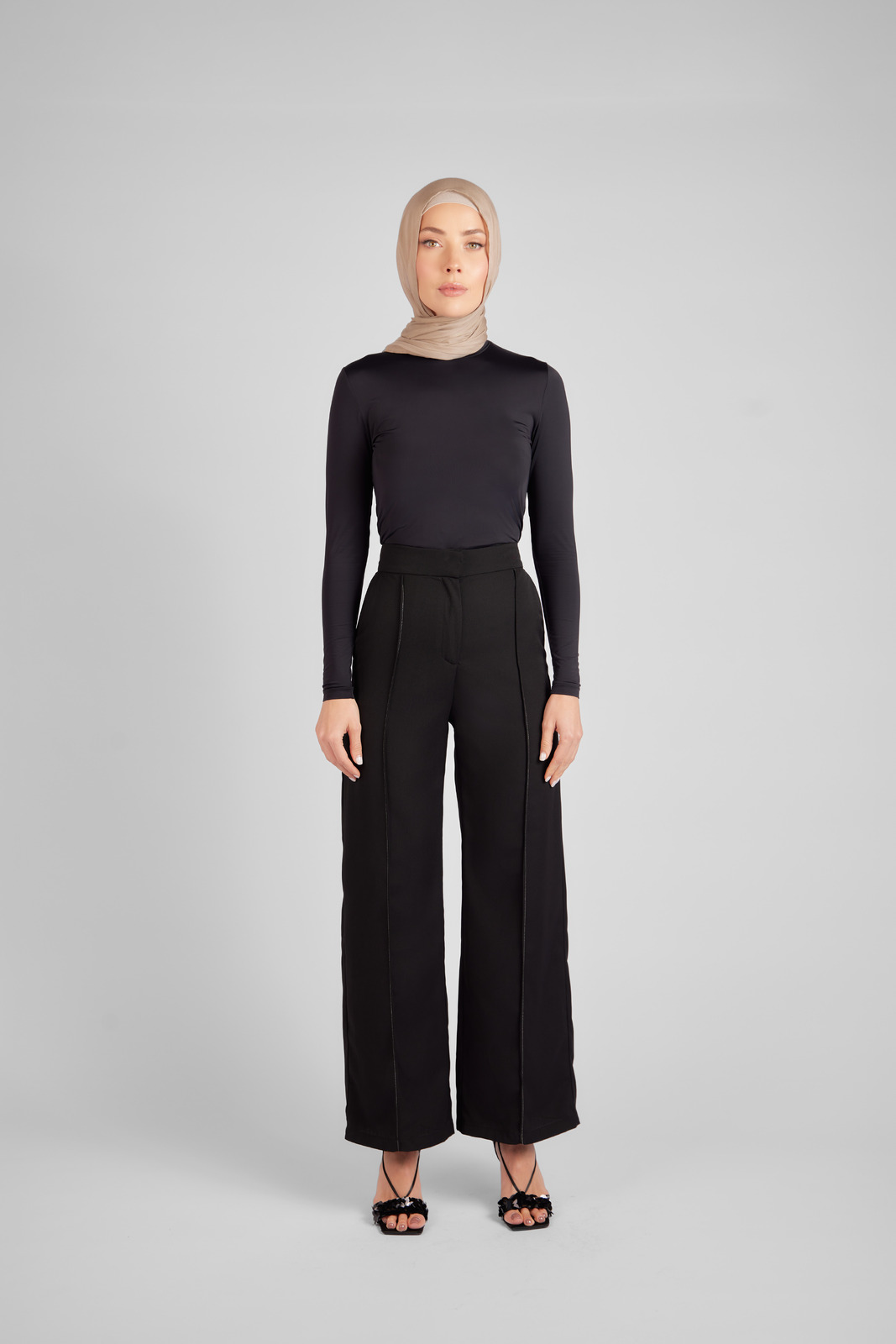 Versatile and sophisticated, these wide leg trousers feature white stitching for a touch of elegance. Ideal for casual or formal occasions, they offer comfort, durability, and endless styling possibilities.Available from 6 to 16