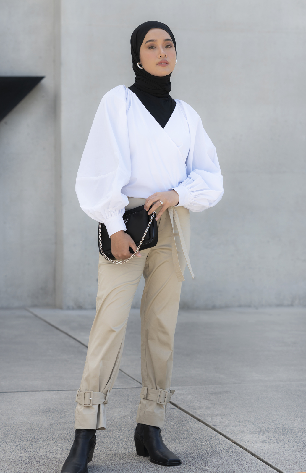 Elevate your wardrobe with high-waisted trousers and a matching tie-up belt for a perfect fit. The belted cuff detail adds flair. Versatile for dressing up or down. Sizes from 6 to 16