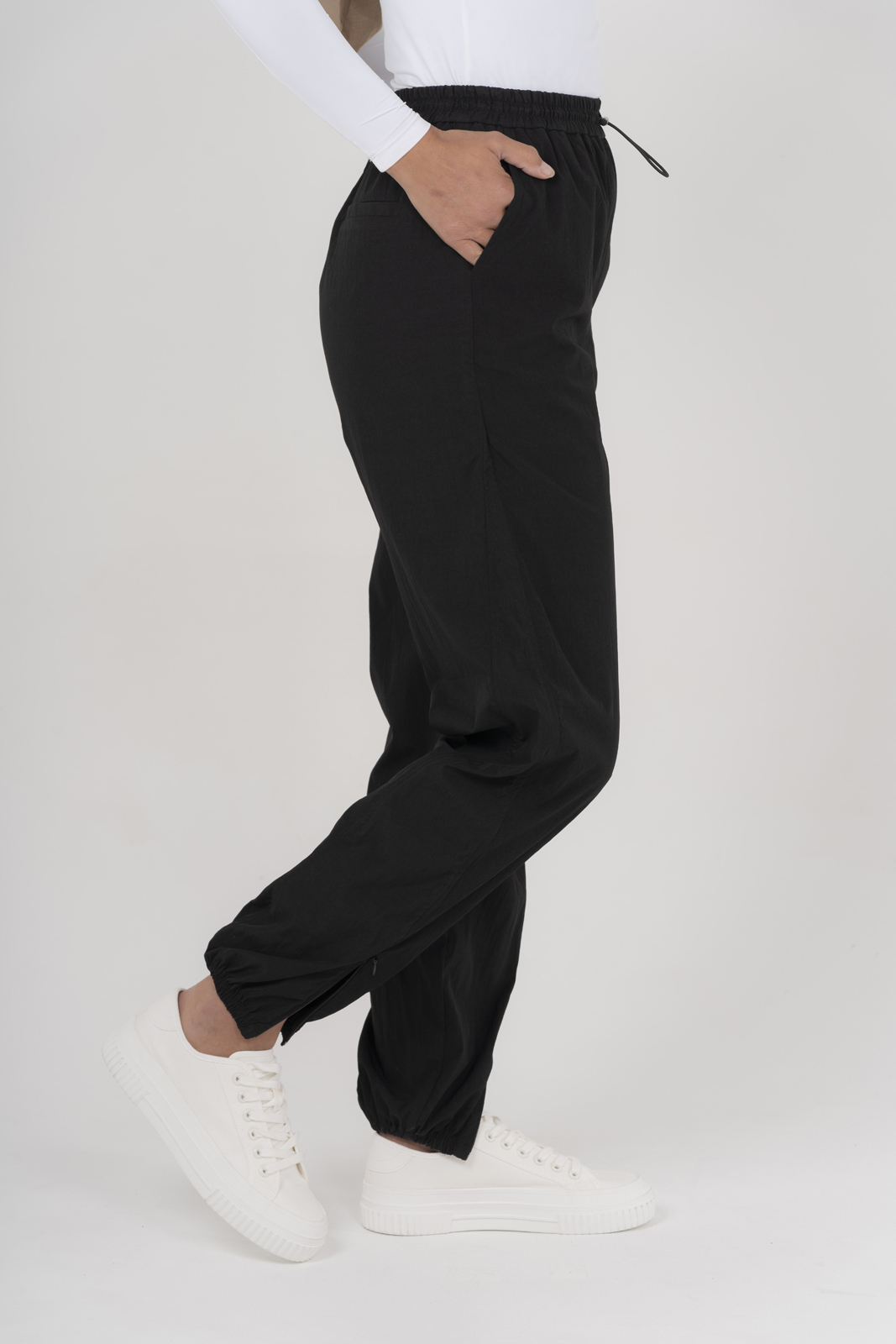 Elevate your wardrobe with the effortless chic of our high-waisted Drawcord Trousers. Meticulously designed to flatter with a parachute silhouette, these trousers boast an elastic waistband complemented by a sleek drawcord, ensuring a perfectly tailored fit. Crafted from airy, lightweight fabric, they promise day-long comfort and style. The distinctive front zipper detailing at the ankles allows for versatile styling options—whether you’re aiming for a tapered ankle or a more relaxed look. For an ensemble that exudes coordinated sophistication, pair them with our matching Drawcord Jacket. Embrace elegance and ease with every step in these drawcord wonders.
