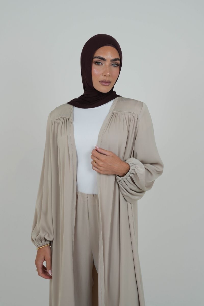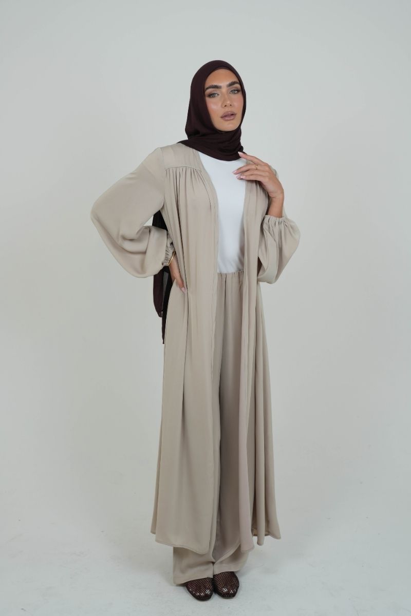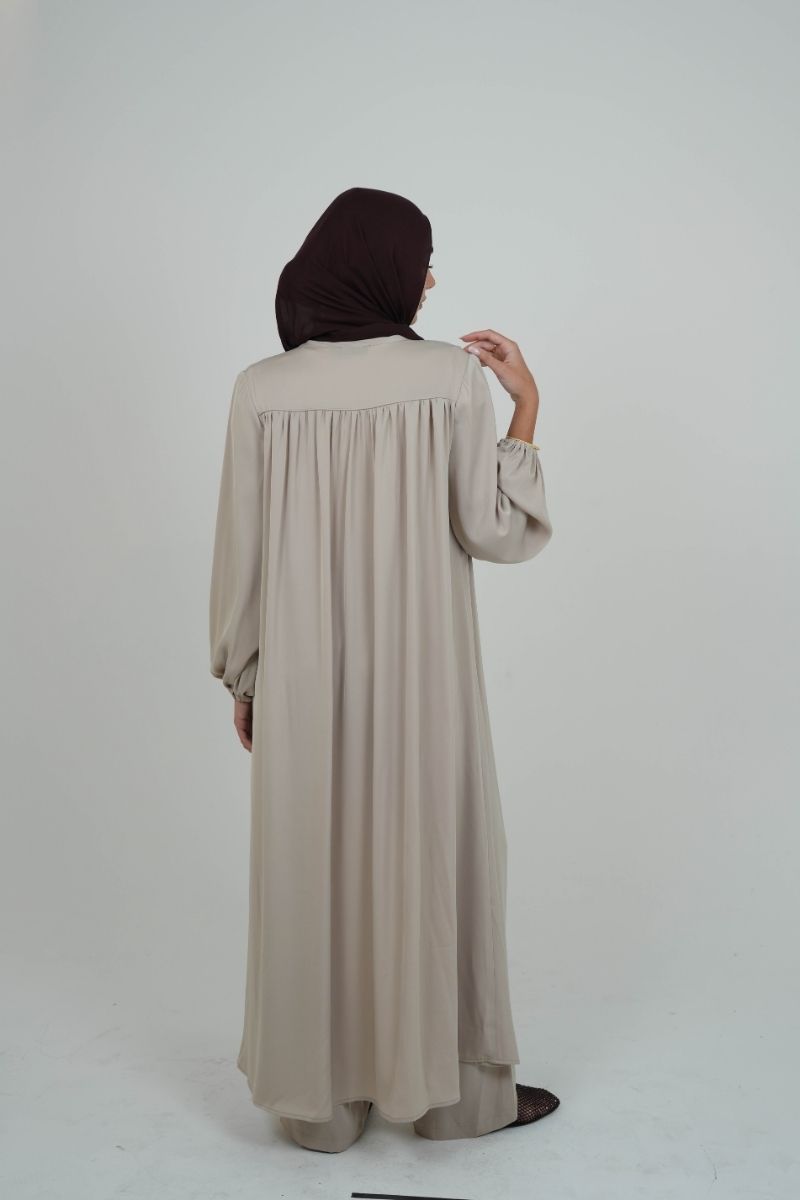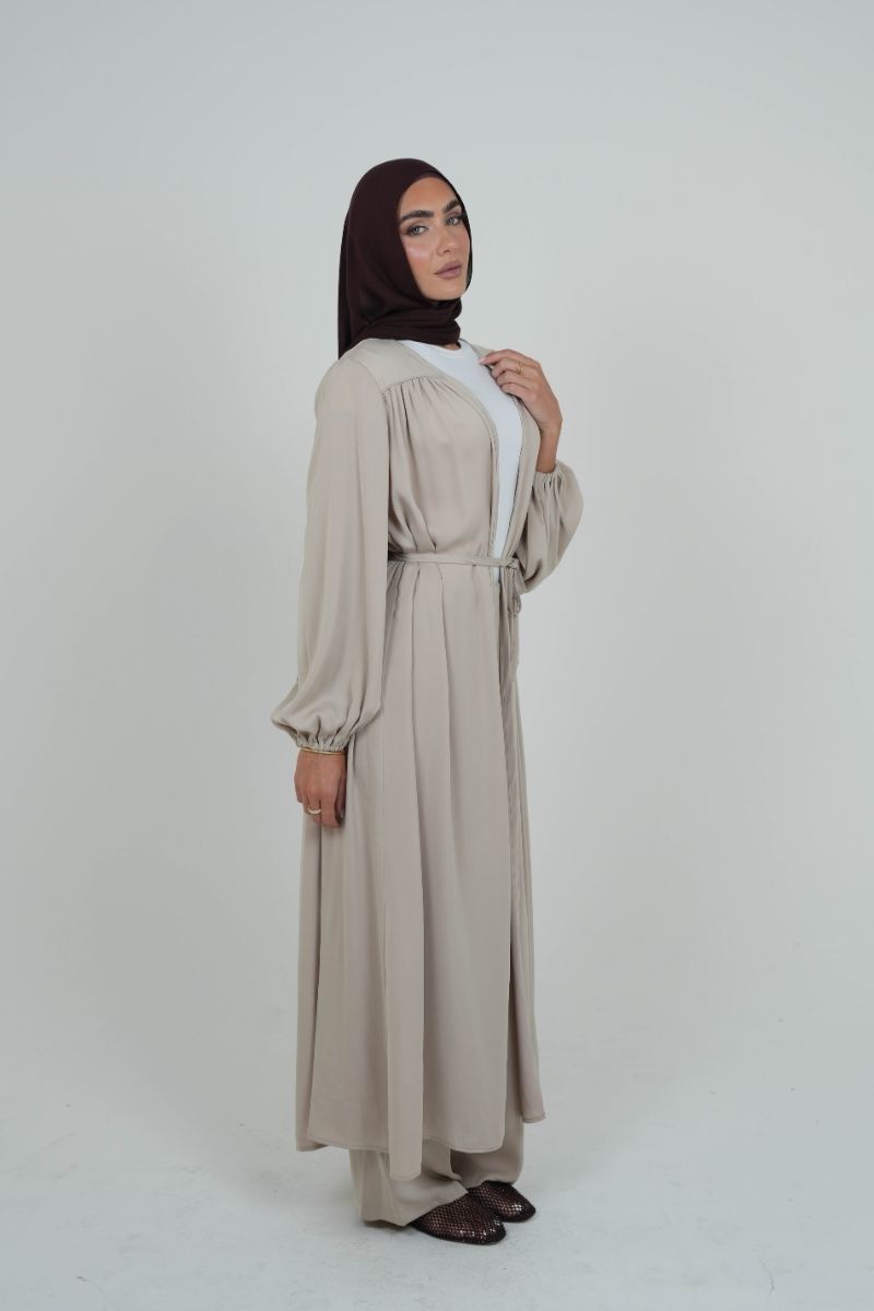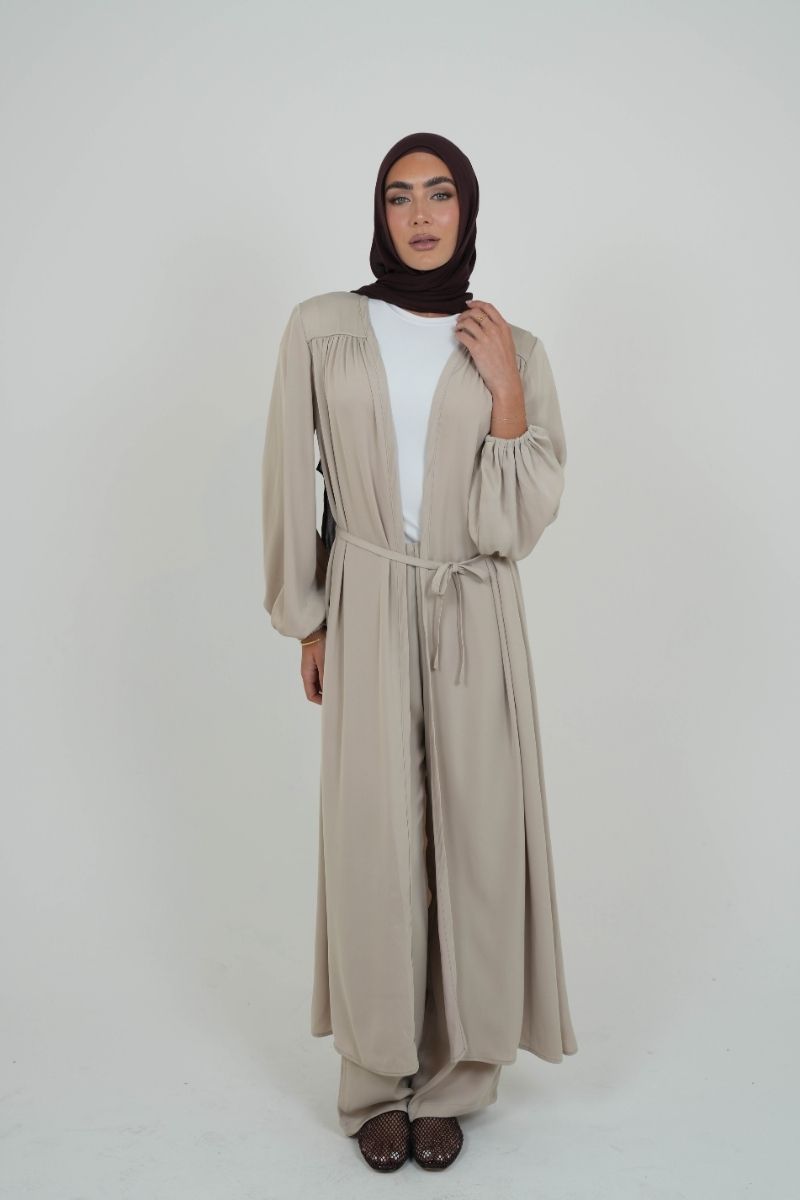 The Dove Satin Cardi is a full-length layer crafted from soft, lightweight satin that flows beautifully with every step. It comes with a thin self-tie belt made from the same fabric — wear it open for a relaxed look or cinch it at the waist for a more defined shape.