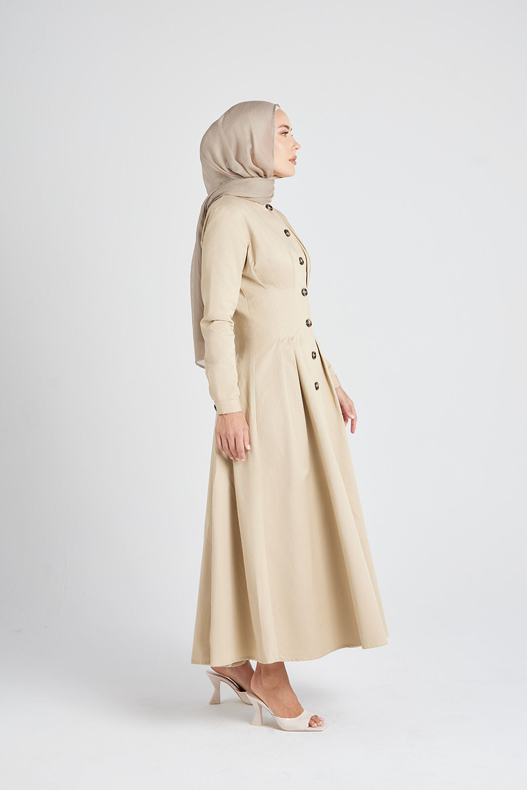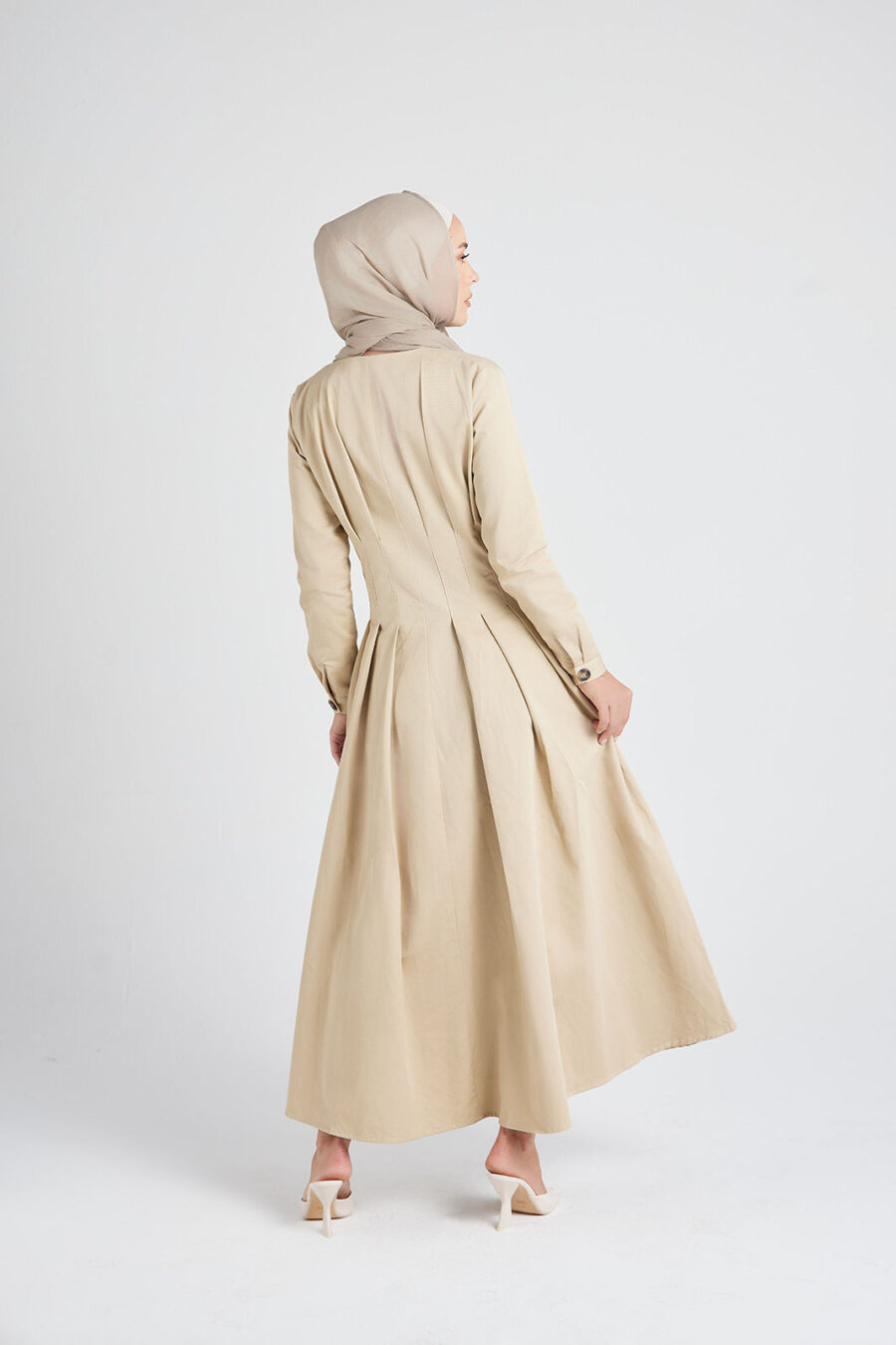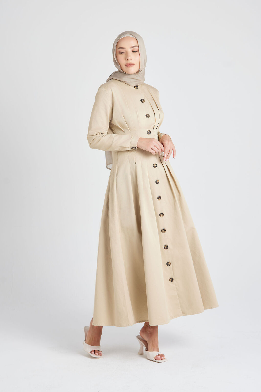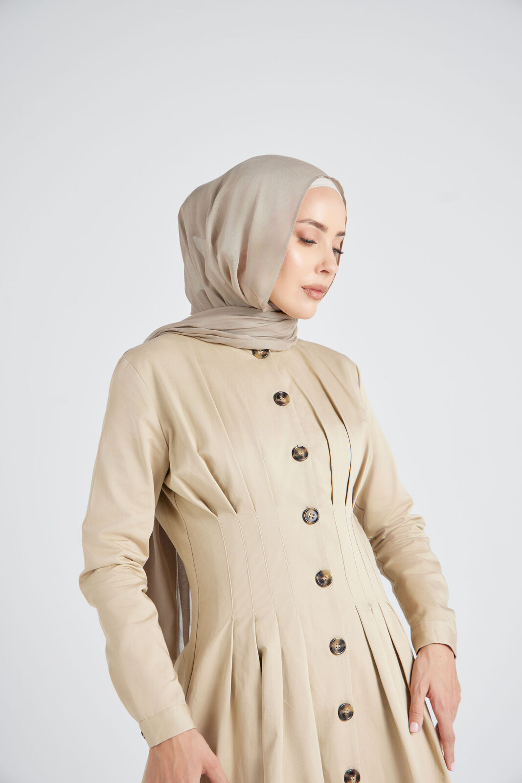 Introducing the must-have Beige Pleated Dress, a stunning addition to your collection. Its beautiful nude color, pleated detailing, and versatile button-down design make it perfect for any occasion.Available from 6 to 16