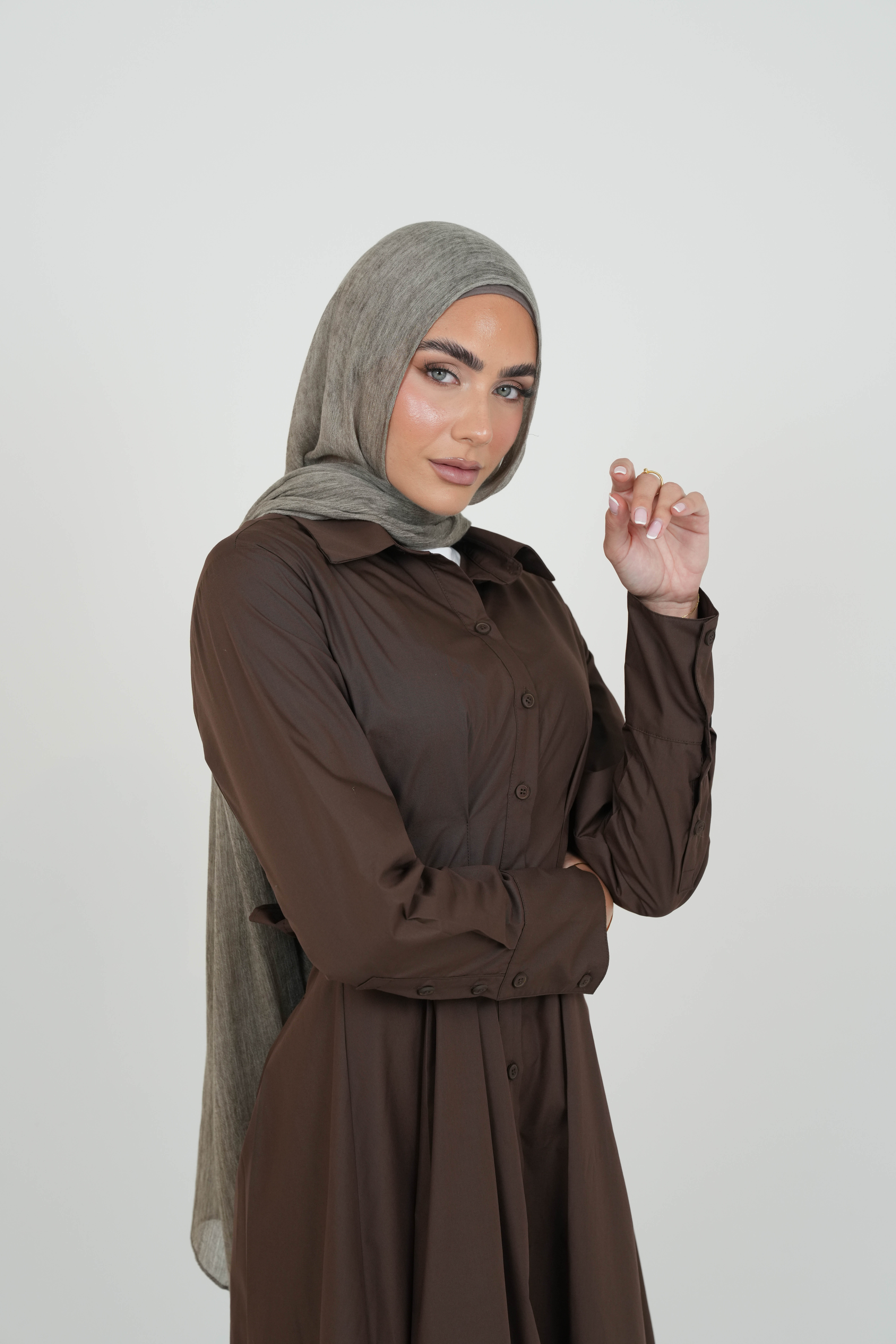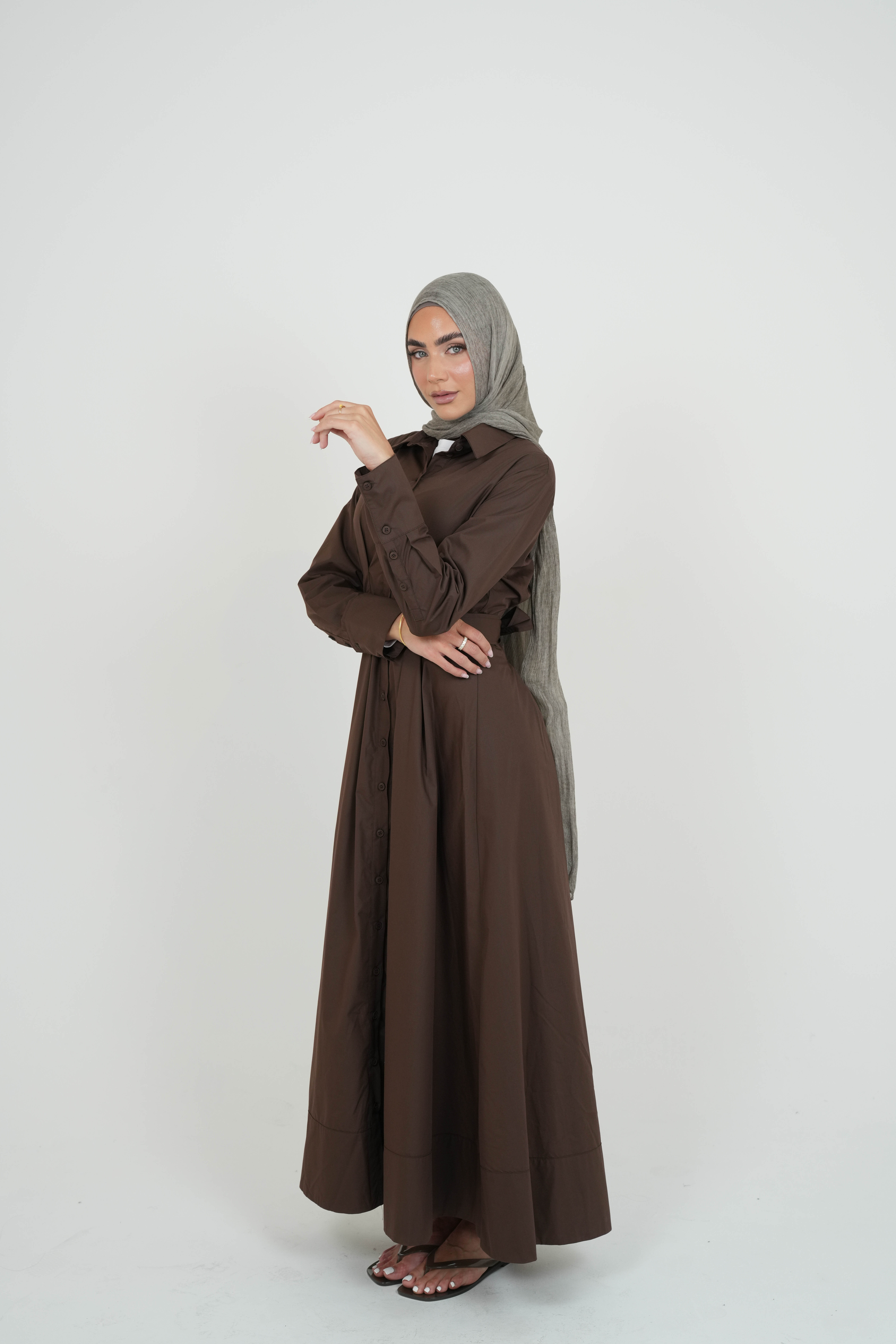 Designed in a modest yet feminine fit, this dress is perfect for layering or wearing on its own for casual or special occasions. The soft, lightweight fabric drapes beautifully, offering comfort and effortless movement.