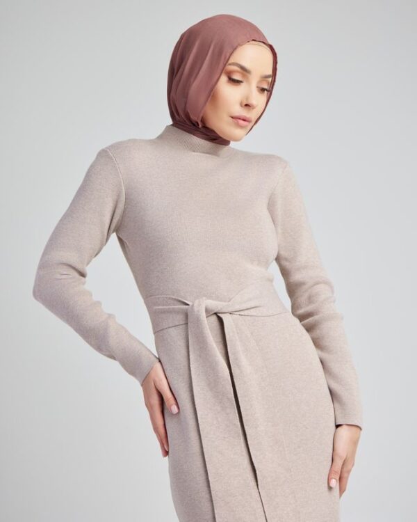 Taupe Slim Belted Dress