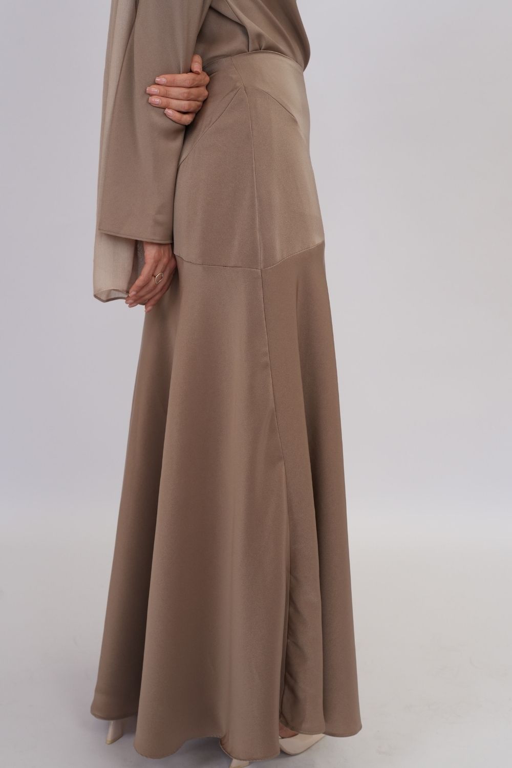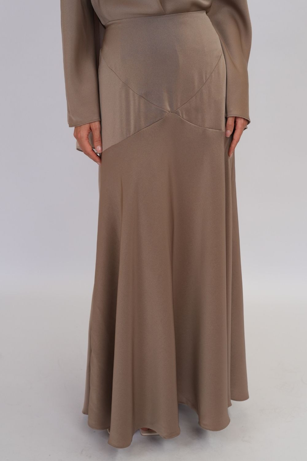Elegant, timeless, and effortlessly chic — this bronze satin skirt is designed to complete your look. Made from smooth, non-sheer satin, it flows beautifully with every step, giving you a soft and graceful silhouette.