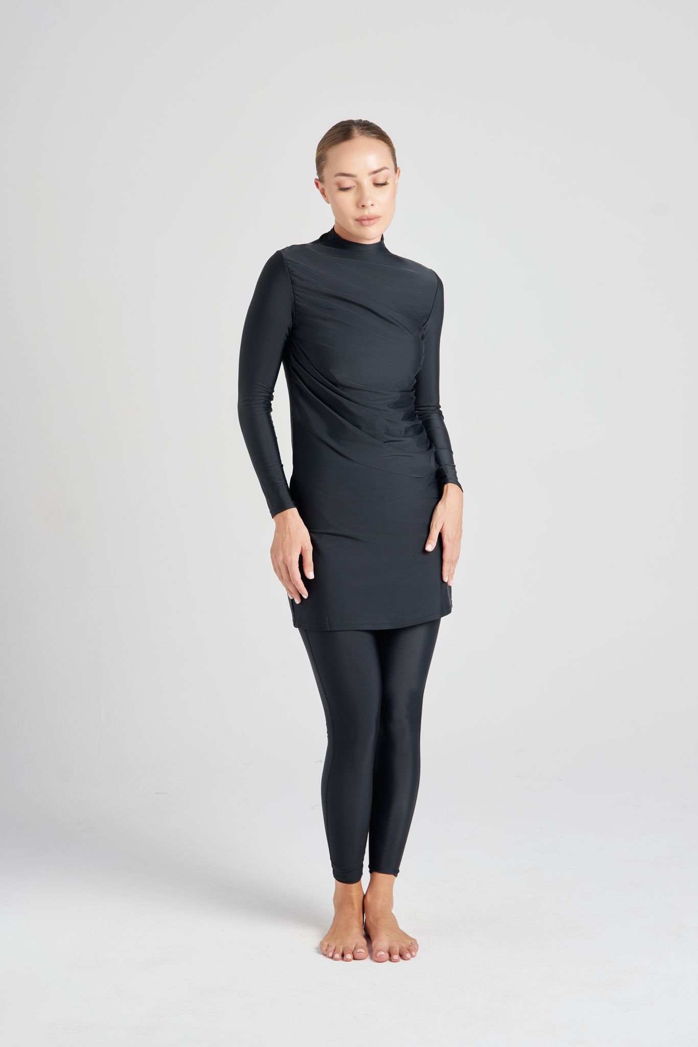 Crafted with premium high-quality nylon and non-clingy material, this swimsuit’s modest cut and long-length tunic design will have you feeling and looking great on your next beach day. Enjoy the freedom of swimming and relaxing in the sun without worrying about your swimsuit clinging or being see-through. Get ready for your next beach adventure with the Byron swimsuit!