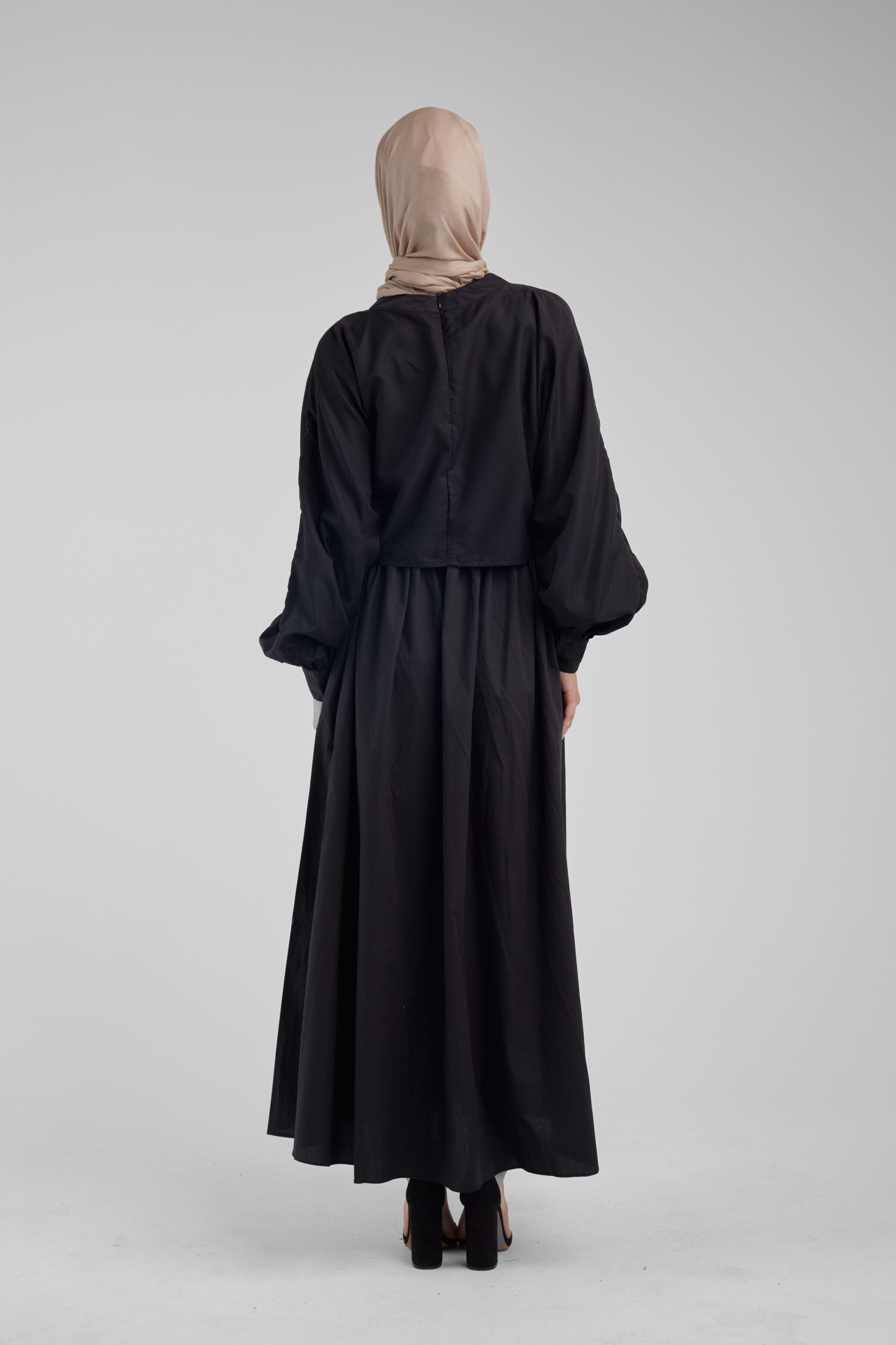 This top is not just a garment but a statement of style, featuring a swing cut that drape beautifully for an effortless look. The classic round neck offers timeless appeal, while the voluminous balloon sleeves add a touch of drama and femininity to any outfit.