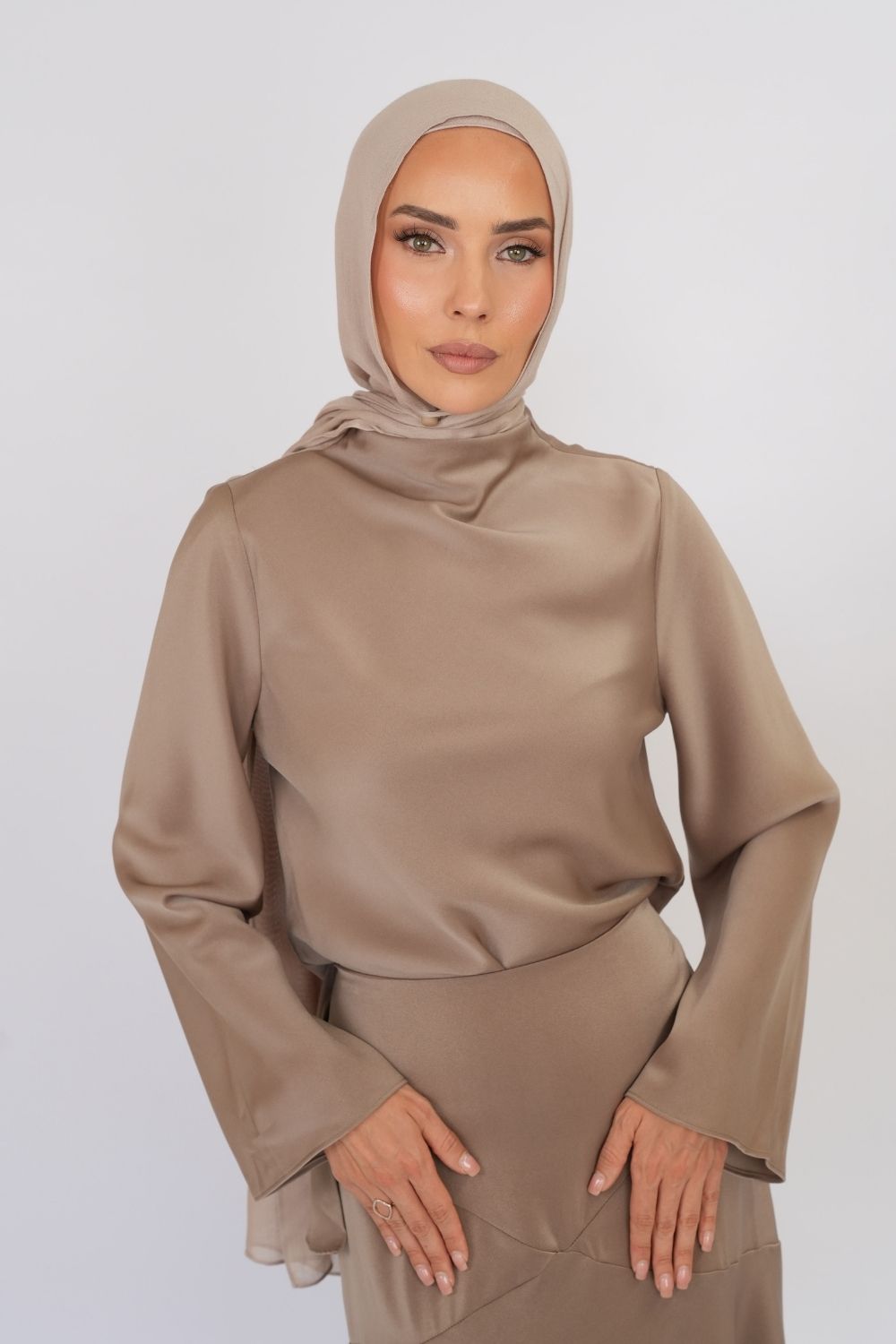 Simple, elegant, and effortlessly chic — this bronze satin top is a timeless wardrobe essential. Crafted from premium satin, it has a smooth, luxurious feel and a beautiful, subtle shine.