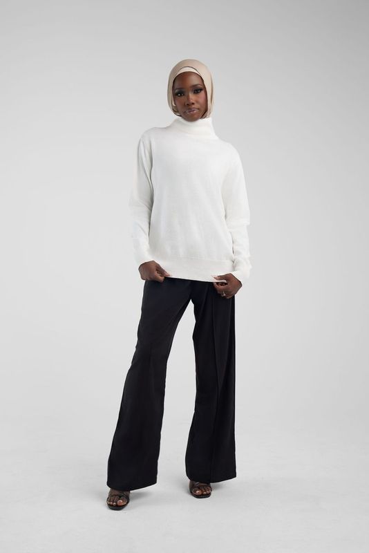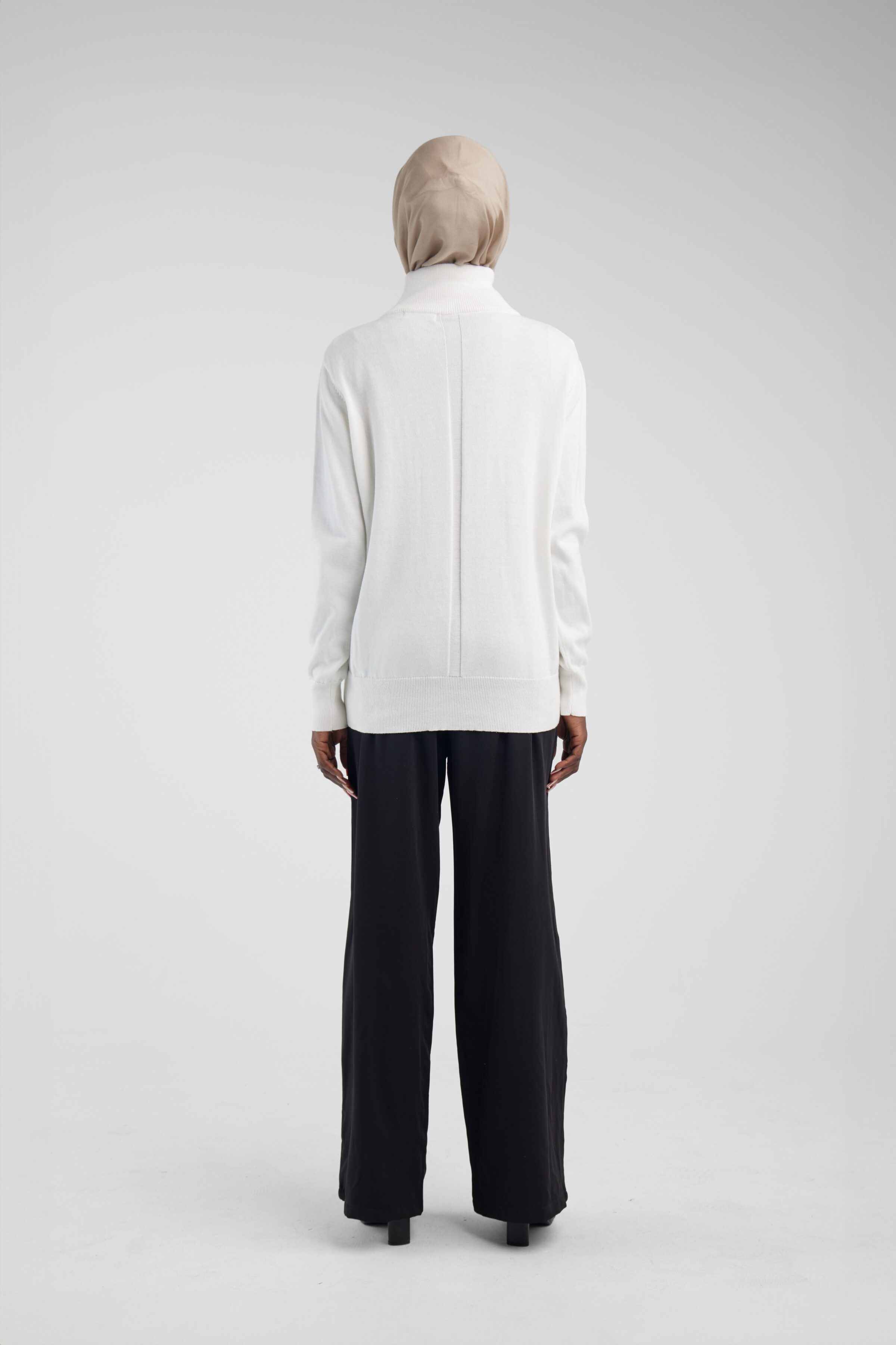 Elevate your seasonal ensemble with the white Turtle Neck, an essential for every wardrobe. This turtleneck exudes understated elegance, tailored for versatility across all your winter attire. Designed to layer flawlessly under outerwear or paired with a spectrum of bottoms, its soft knit fabric promises comfort without constriction. The ribbed turtleneck and cuffs add a touch of sophistication, while the relaxed fit ensures effortless style and ease of movement. Experience the blend of luxury and practicality with this chic staple.