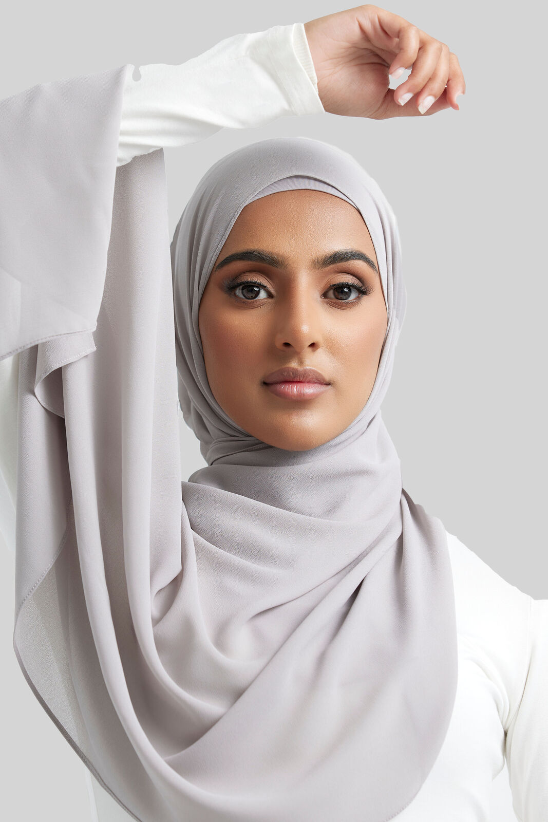 Discover our essential chiffon hijab, crafted for comfort with a soft, breathable, and lightweight feel. Versatile for any occasion, it drapes effortlessly and offers a slight stretch for all-day wear.