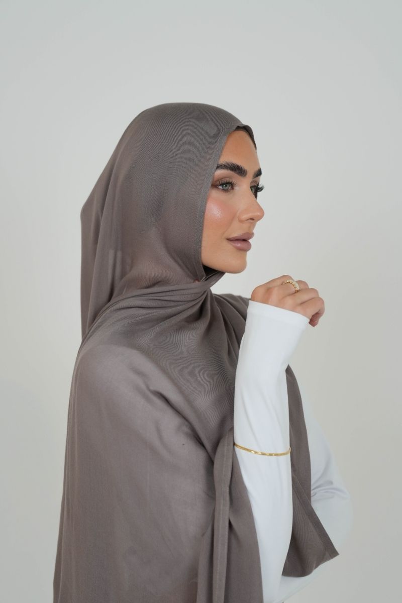 Introducing our Premium Modal Hijabs! Perfectly crafted to provide maximum comfort, our modal hijabs are designed with a lux material that will surely elevate your look. Our original modal hijabs have been refined! Our new premium modal hijabs feature a slightly tighter weave and are less sheer. Our Premium Modal Hijabs are made with modal fabric giving these hijabs a beautiful luxurious sheen and buttery soft feel. Our Premium Modal Hijabs are breathable, versatile and work well with almost any hijab style for any occasion. Pair with our Bamboo caps for maximum coverage. We have put in a lot of effort to assemble this selection featuring a diverse array of shades that can match your daily lifestyle. Product Features: -Bamboo material   -180cm x 70cm -Double stitched hem -Slightly sheer