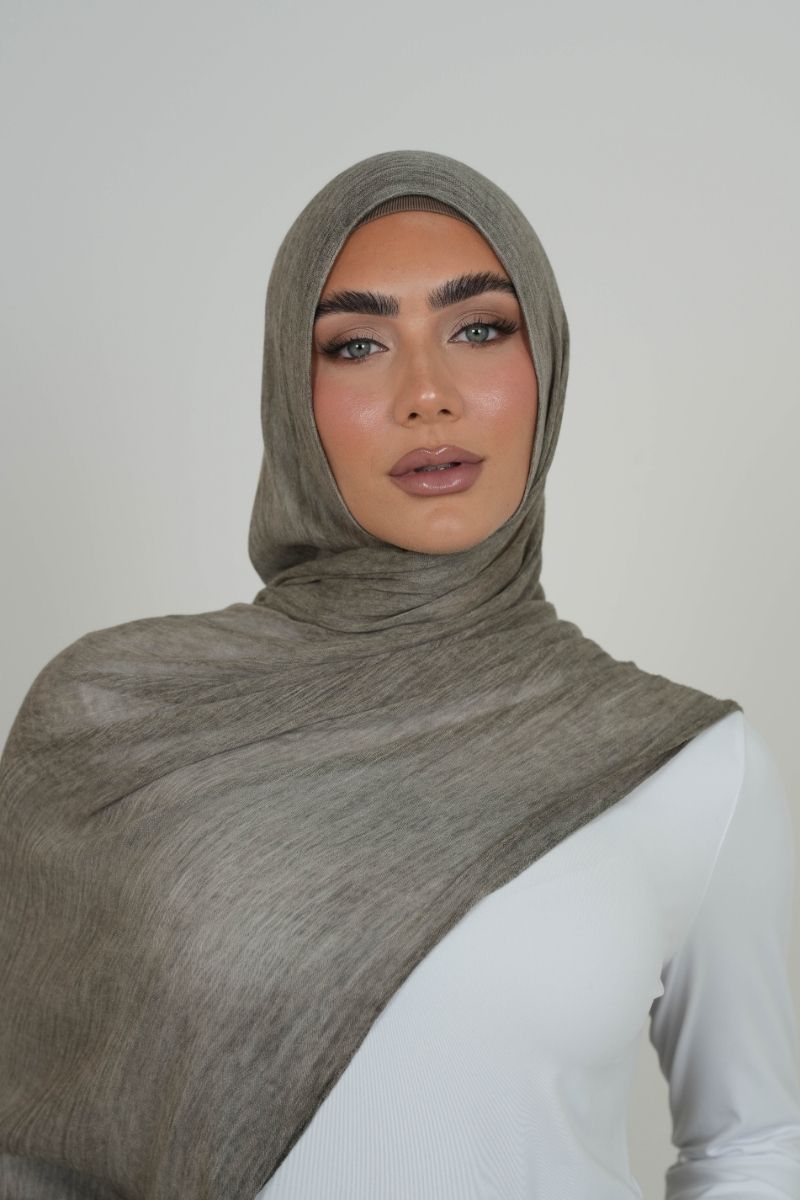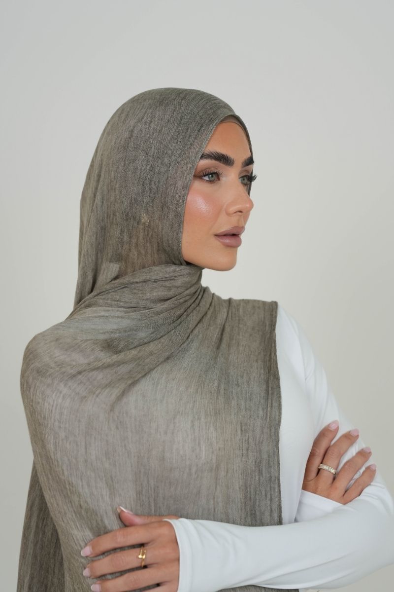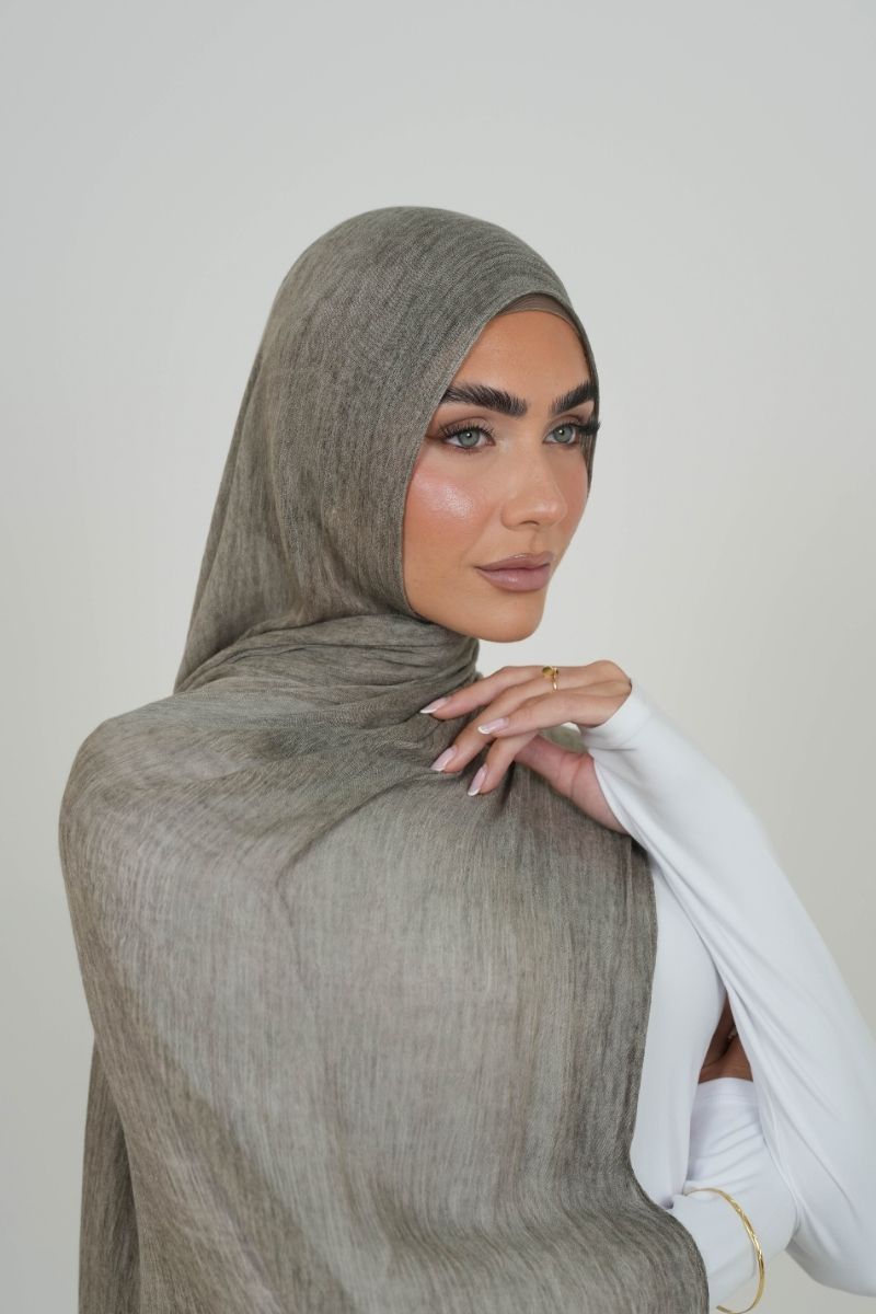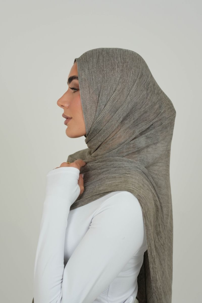 This elegant hijab, crafted from high-quality satin with a wrinkled structure, is thin and lightweight. It effortlessly flows, offering various shades to suit any style. A wardrobe essential!