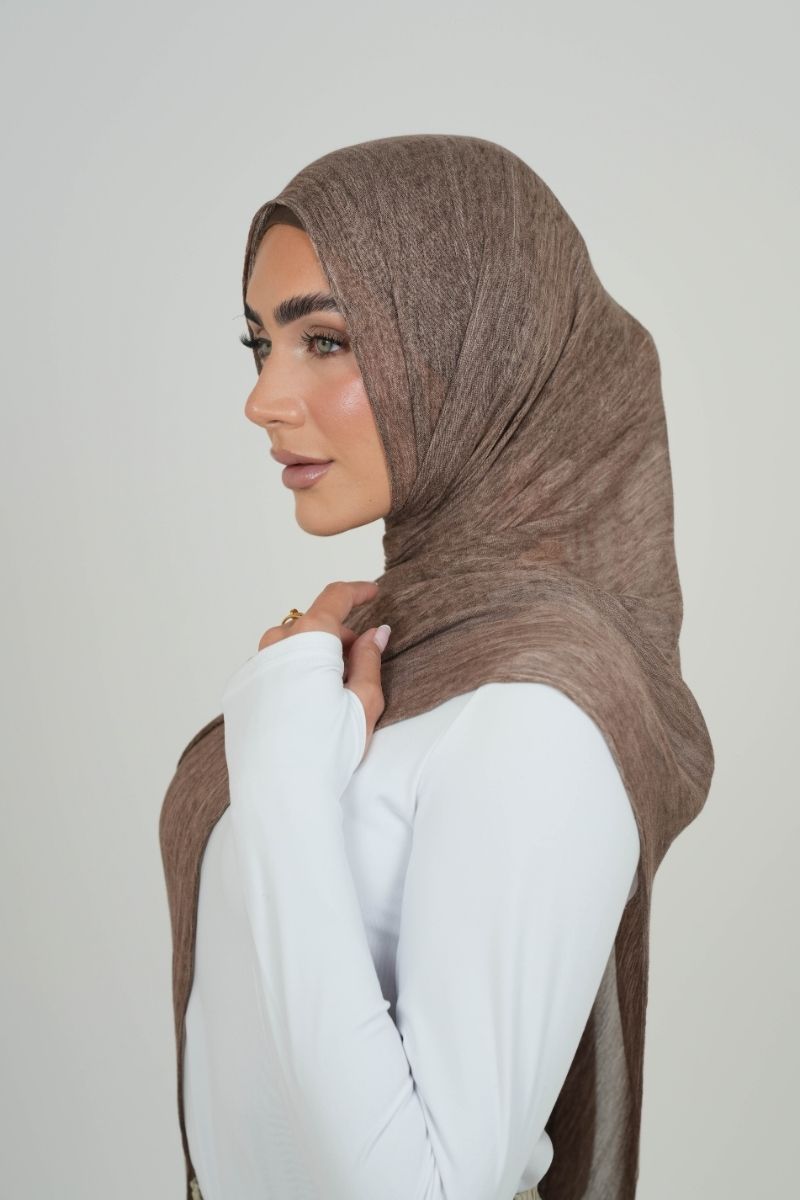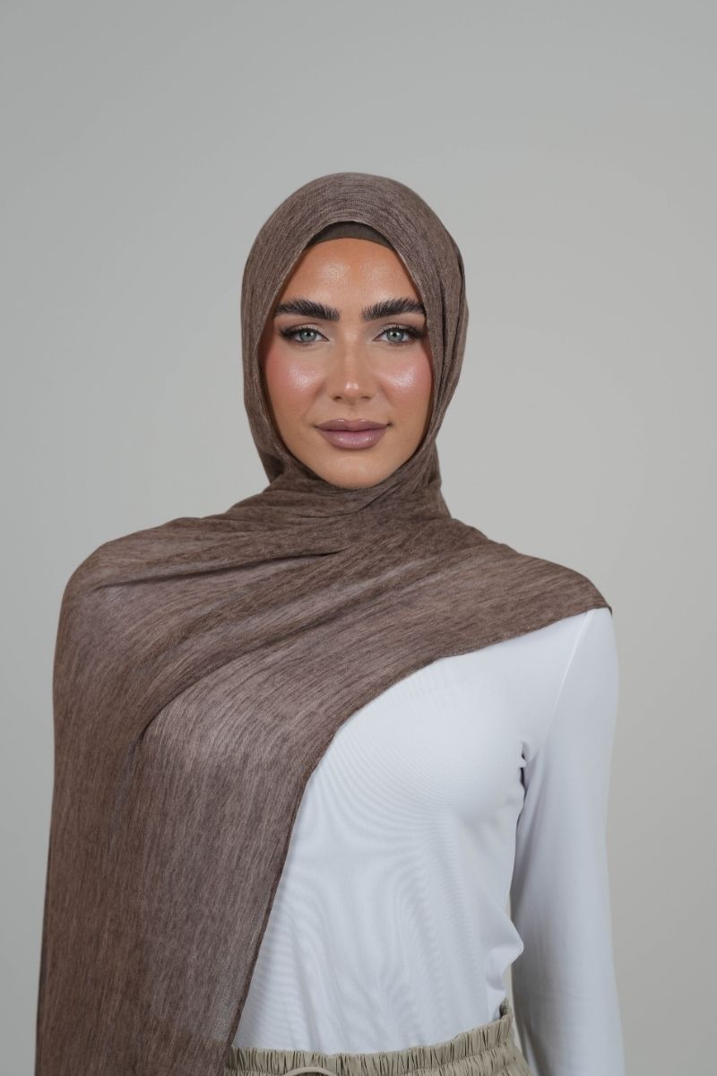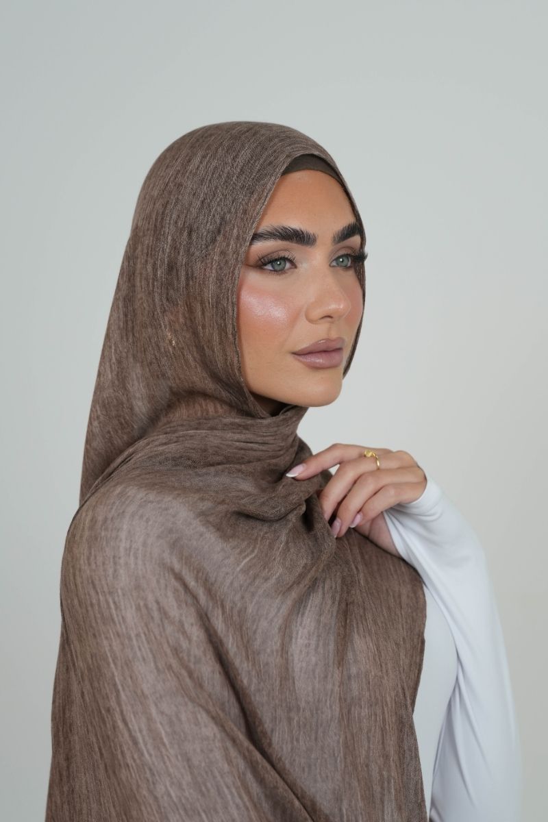 This elegant hijab, crafted from high-quality satin with a wrinkled structure, is thin and lightweight. It effortlessly flows, offering various shades to suit any style. A wardrobe essential!