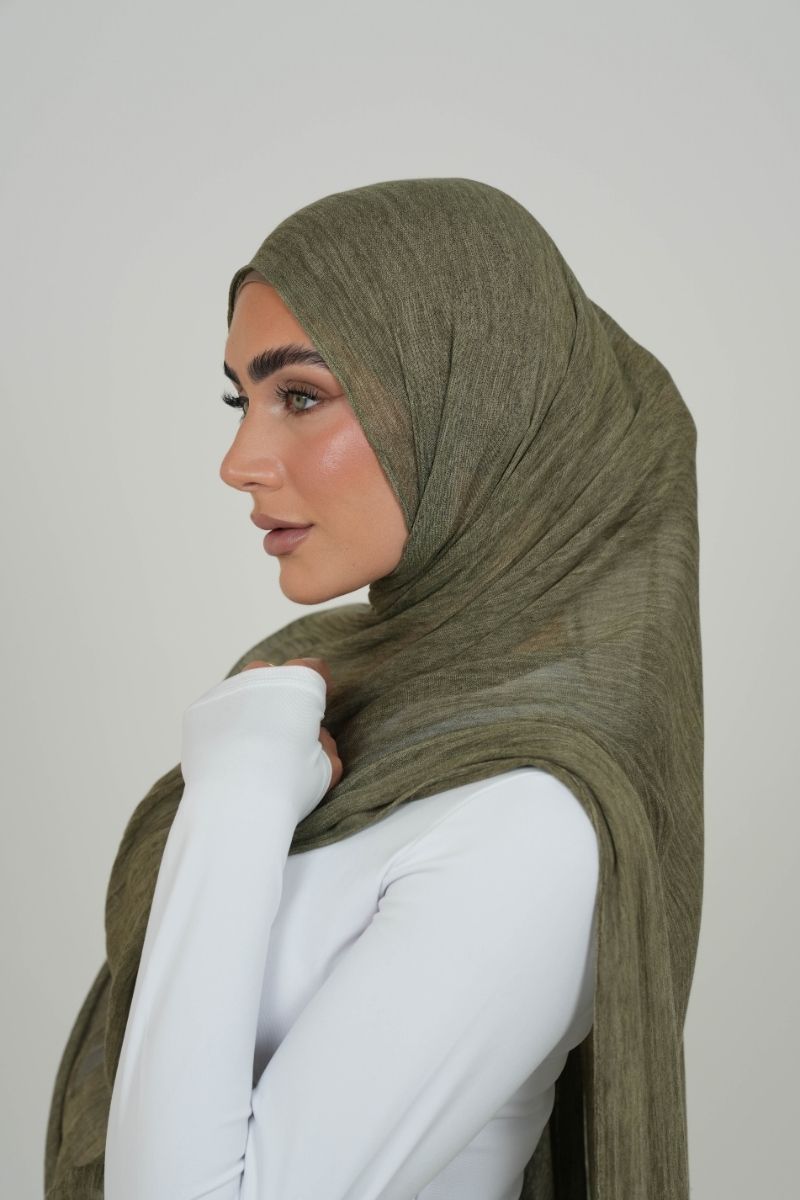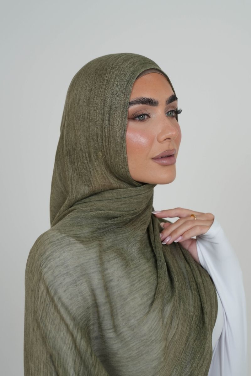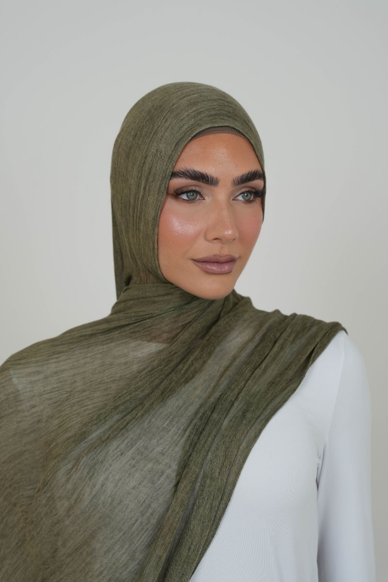 This elegant hijab, crafted from high-quality satin with a wrinkled structure, is thin and lightweight. It effortlessly flows, offering various shades to suit any style. A wardrobe essential!