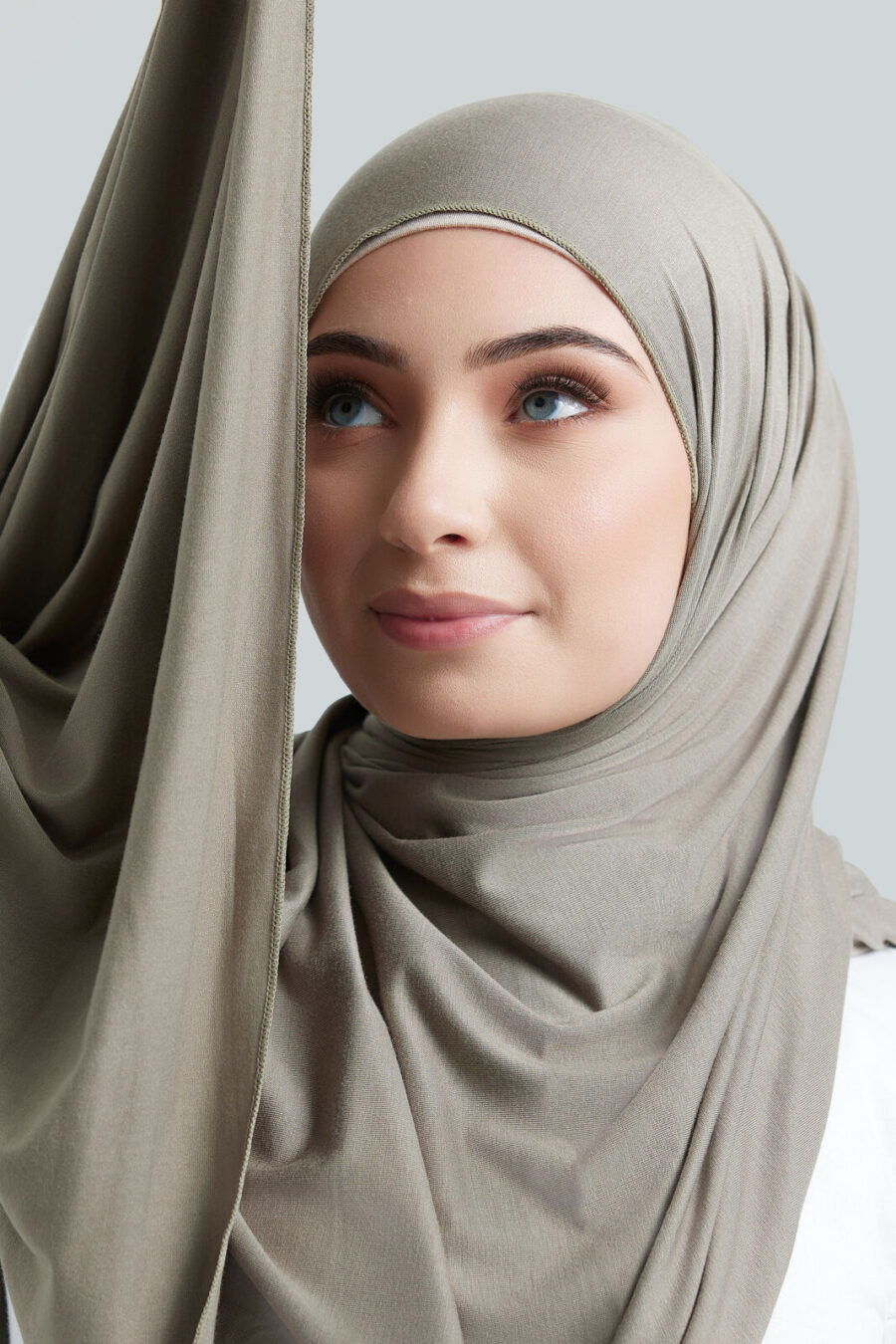 Luxurious Jersey Hijabs crafted from premium rayon cotton and spandex blend for a silky, stretchy feel. Effortlessly stylish, lightweight, and resilient in six coordinating colors for everyday elegance.
