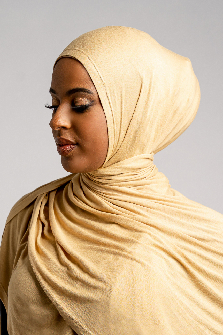 Soft viscose jersey lark hijab with a super stretch in a lightweight fabric and a rolled top stitch hem. High-quality and breathable. Non-sheer.