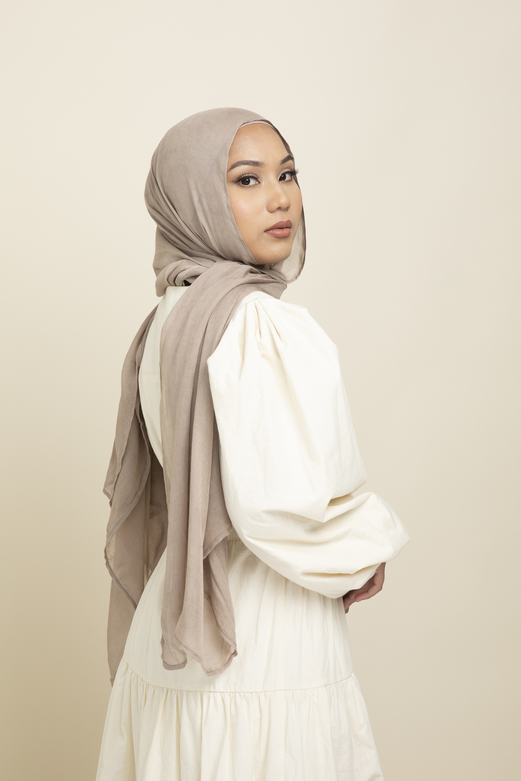 Our Modal Hijab, crafted from 100% micro modal, offers a lightweight, soft touch. Providing optimal coverage without heaviness, it features double-stitched hems for durability, requires no pins, and is eco-friendly. Various colors available.
