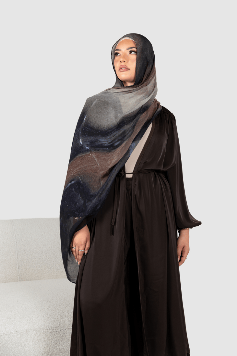 Introducing “Nature’s Palette” – a breathtaking collection of modal hijabs that brings the raw beauty of the natural world to your wardrobe. The Terracotta Printed Modal Hijab was inspired by gradients of terracotta, beige, and warm brown tones, reflecting the natural colours of clay and stones. These were blended in a way that suggests the layering of sediments or the warm hues of desert rock