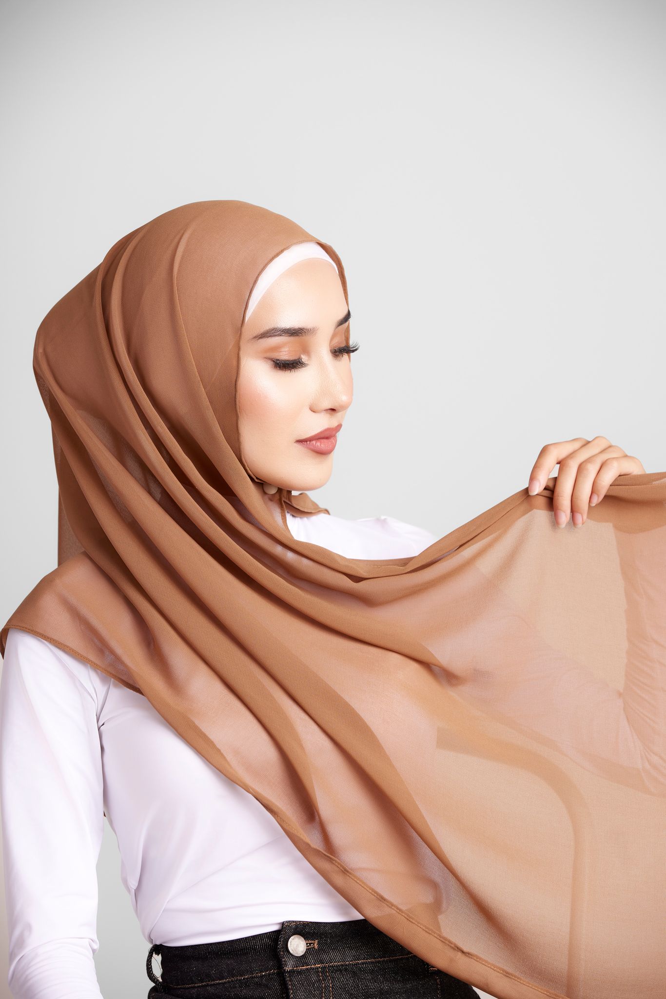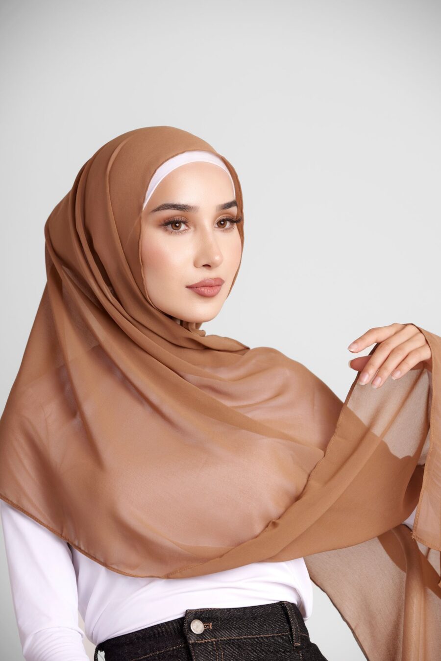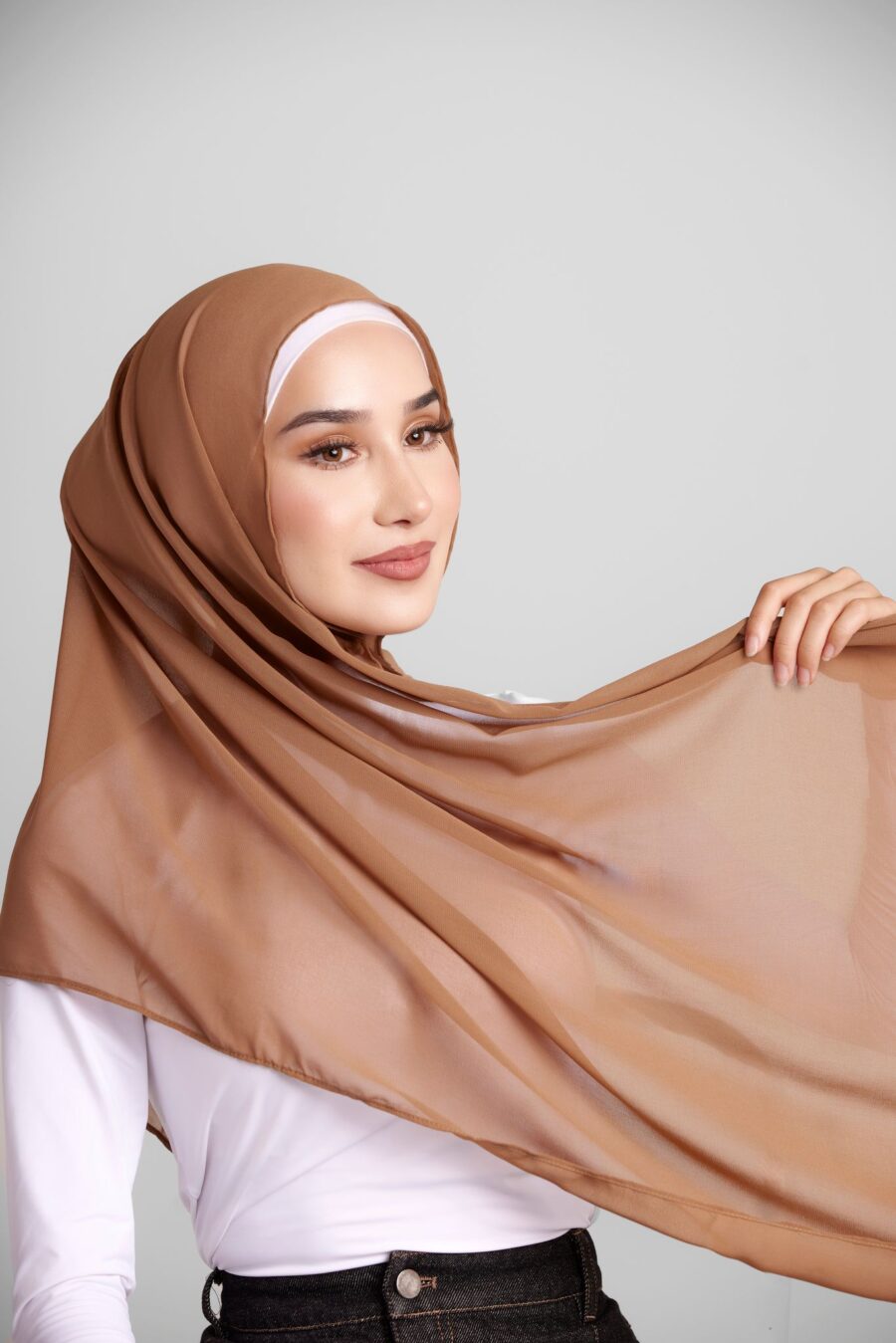 Our essential chiffon hijab is lightweight, soft, and breathable, draping easily with a slight stretch. Ideal for all-day wear, it suits any occasion, and its diverse shades complement your daily lifestyle.