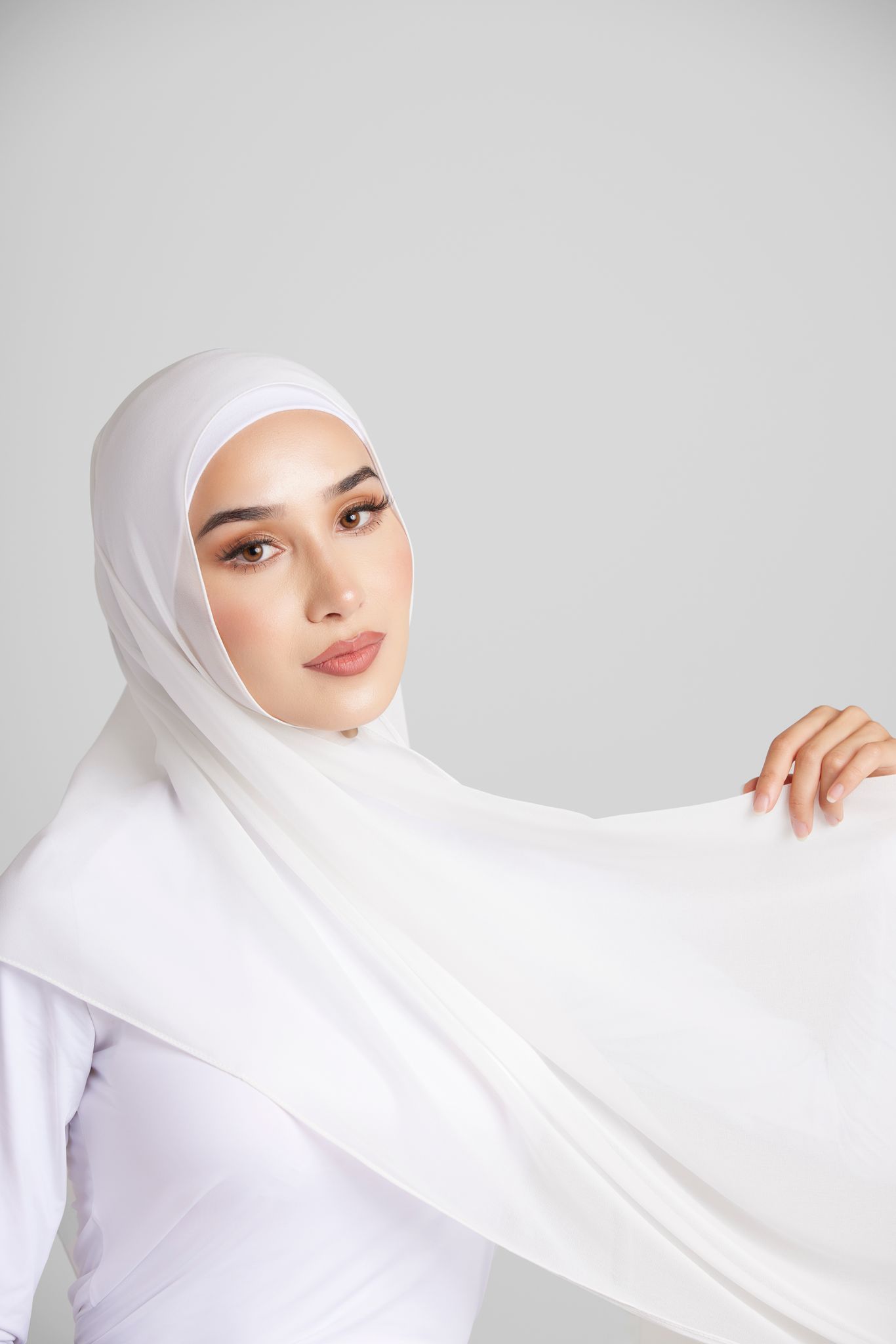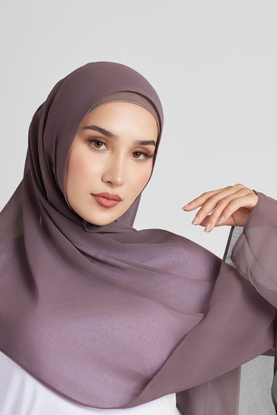 Discover our essential chiffon hijab, crafted for comfort with a soft, breathable, and lightweight feel. Versatile for any occasion, it drapes effortlessly and offers a slight stretch for all-day wear.