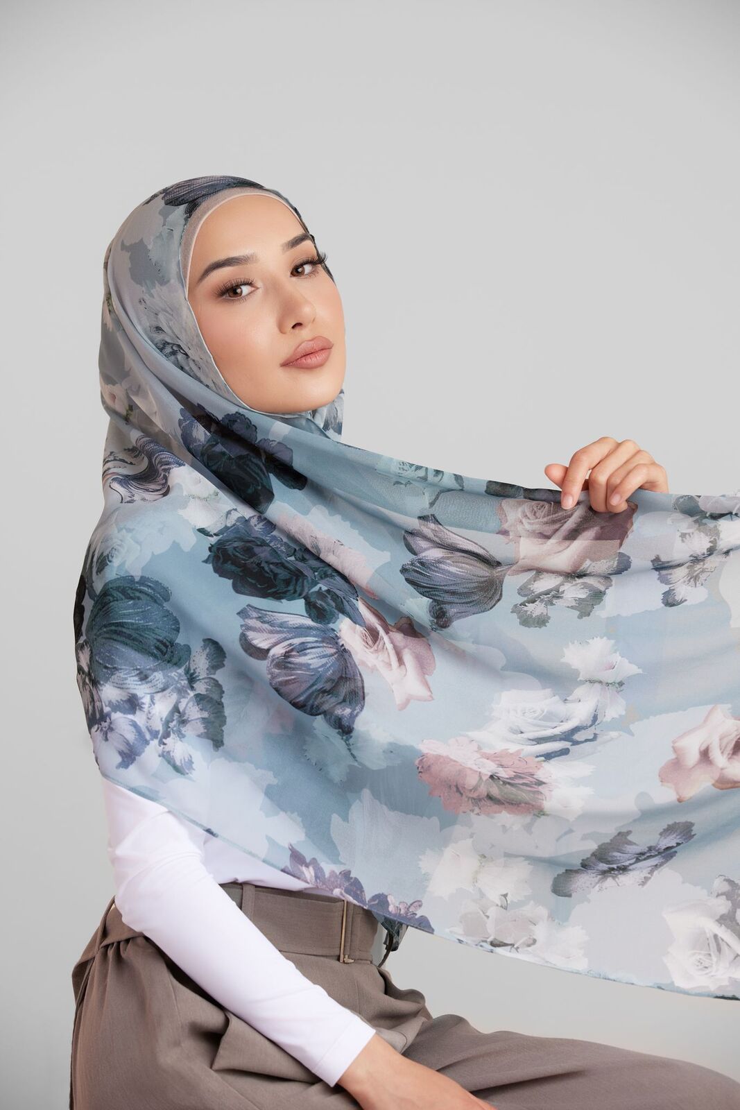 The romantic printed hijab is a beautiful accessory that exudes elegance and femininity. The delicate motifs and intricate patterns in soft colours such as blush pink, grey, and baby blue exude elegance and femininity. The incorporation of blooming flowers into the design adds a touch of romance and sophistication, making it perfect for any occasion. Whether it’s for a wedding, a romantic dinner, or everyday wear, the printed hijab is a timeless accessory that complements both casual and formal clothing. It’s no wonder that the printed hijab has become a staple in the wardrobes of many Muslim women around the world.